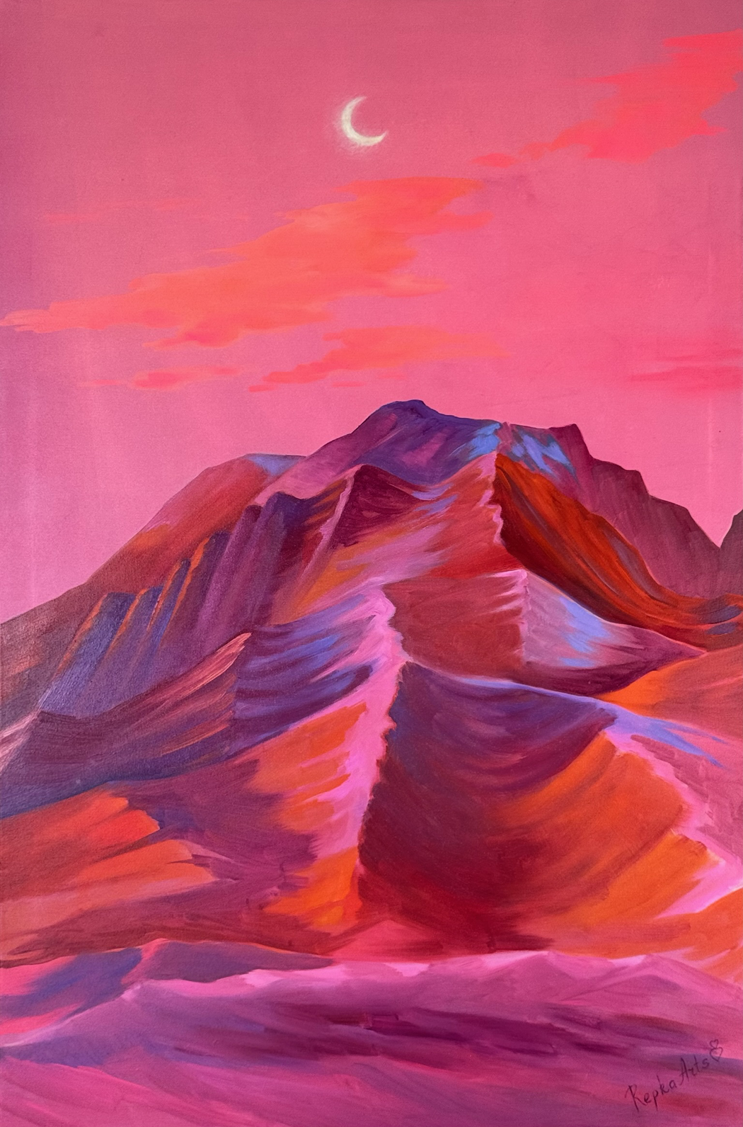 The colours often come from a feeling, an emotional response to a scene. Sometimes it’s a real sunset that just takes my breath away, and I want to capture that intensity. Other times, it’s more about creating a certain mood, a sense of wonder or tranquility. The pinks, in particular, can be so evocative – they can be soft and ethereal or surprisingly bold. It’s a very intuitive process, playing with the tones until they feel just right, until they capture the essence of what I want to convey.