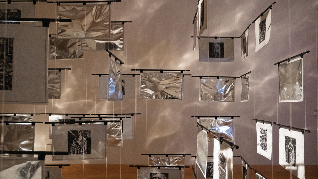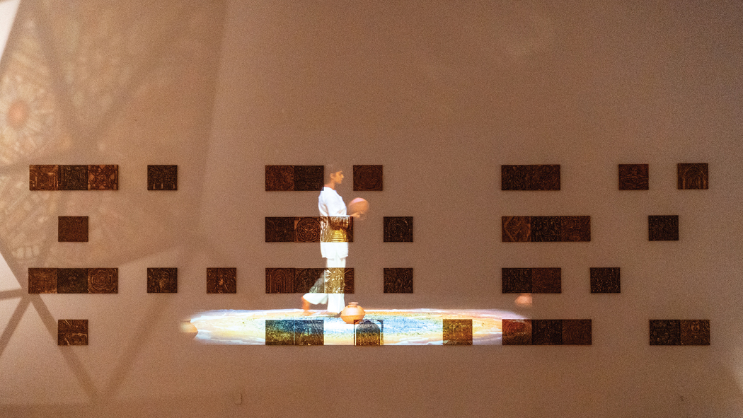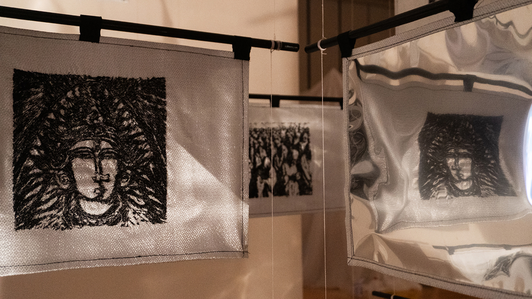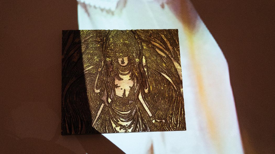 I approach ritual through daily observations of the body in space, drawing from simple gestures – walking, sitting, standing, moving in circles. I observe and question how the body interacts with its environment, which is the inspiration for a lot of the installation work. These gestures are then transformed through reflecting upon existing sacred mythologies and spiritual rituals. In Pantheon, one is surrounded by a much larger dome that envelops them, while in Labryinth, the body traverses a winding space to the centre and back out. The visitors engaging with these spaces are invited to perform their own rituals within them. For me, ritual isn’t separate from our everyday being, but is transformed through the act of awareness, embodiment and presence. Brushing our teeth, going to work, cleaning, cooking, everything is essentially a ritual in itself. A ritual is created through daily living and repetition in our everyday lives that, in turn, shapes our entire being. Stained glass, embroidery, and wood-carving have all been processes in creating sacred relics due to their painstaking, laborious, repetitive nature, which itself becomes an act of meditation. Materials in my work embody these rituals of repetition with the hand and machines, opening up space for a deeper reflection of the present times.