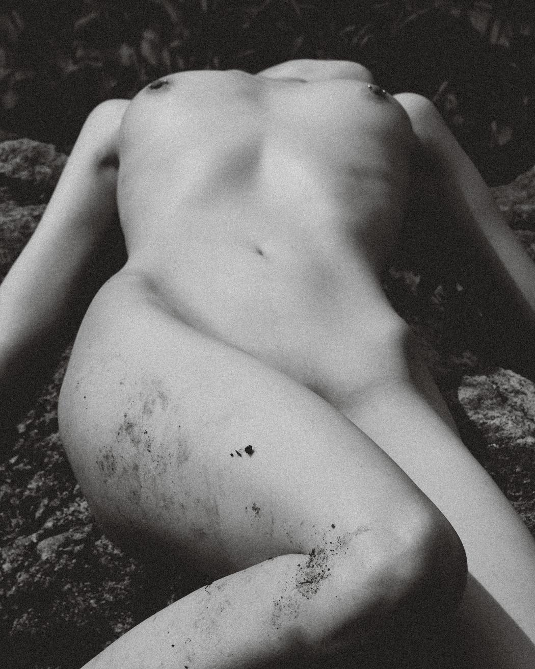 I try to visually fit a nude figure into a space or a natural object, such as a rock, so that the image gives the feeling that the figure has always been there. So that the shot doesn’t look like it was planned on purpose, but gives the feeling that it has always been there. When working with a model, I often ask her, for example, when she is next to a tree or a stone, to try to become it and improvise. I believe that such a moment in terms of energy or “spirit” also immerses you in the context of nature itself, it can be felt in a non-verbal way.