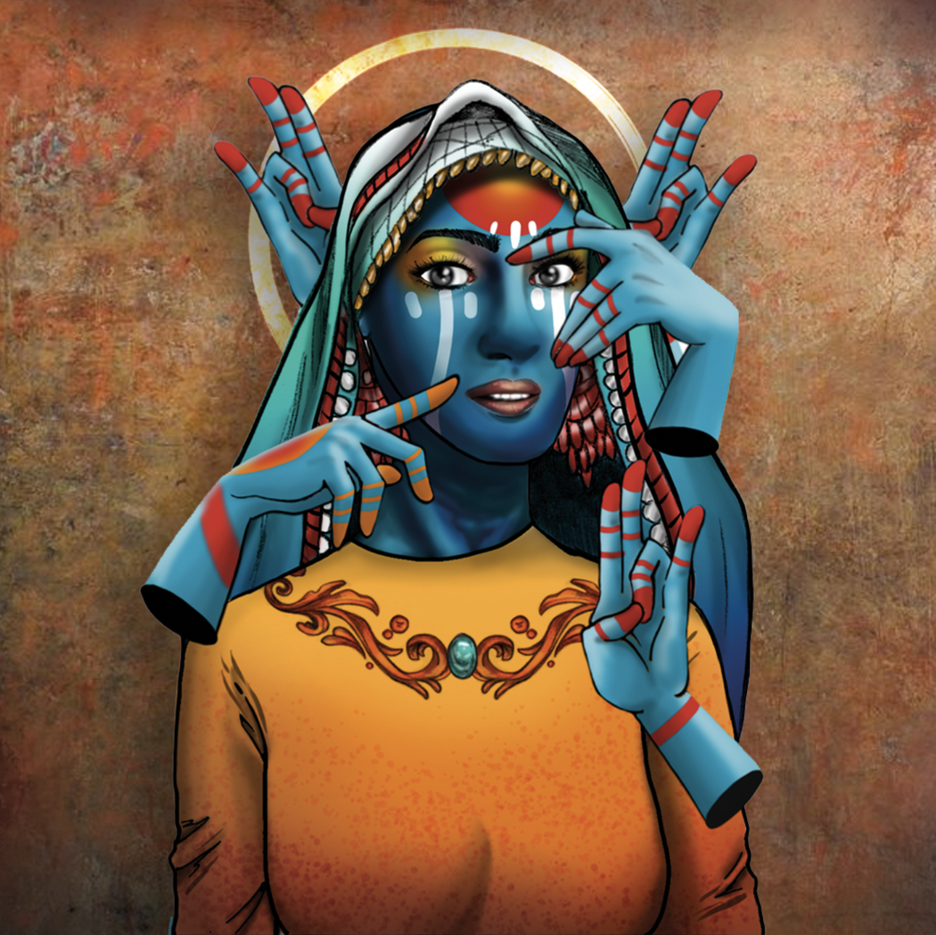 Color is the heartbeat of my work. It speaks before form does. I use it as an emotional compass — to express power, vulnerability, divinity, or resistance. At the same time, color carries cultural memory: certain palettes are tied to rituals, empires, and spiritual practices. Through color, I try to create atmospheres that evoke both the emotional tone of the character and the cultural echoes they embody.
