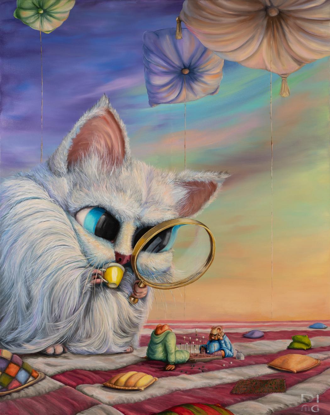 Your paintings are described as surreal fantasy filled with dreamlike, mysterious imagery. How do you usually begin developing these imaginative compositions?