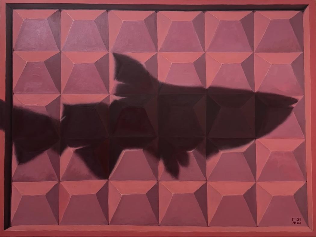 The first sketches of my paintings happen spontaneously. When I find a random piece of paper, I just start moving my pen over it without thinking, and my hand draws the first shapes and images on its own. I don’t really understand what’s going on or what the characters are doing. The scenes look incomplete, like pieces of a story left unfinished. But sometimes ideas come ready-made. For example, my wife saw a pink concrete fence in a dream. She told me about it, and I painted it. I just added a shadow of a fish for some reason.
