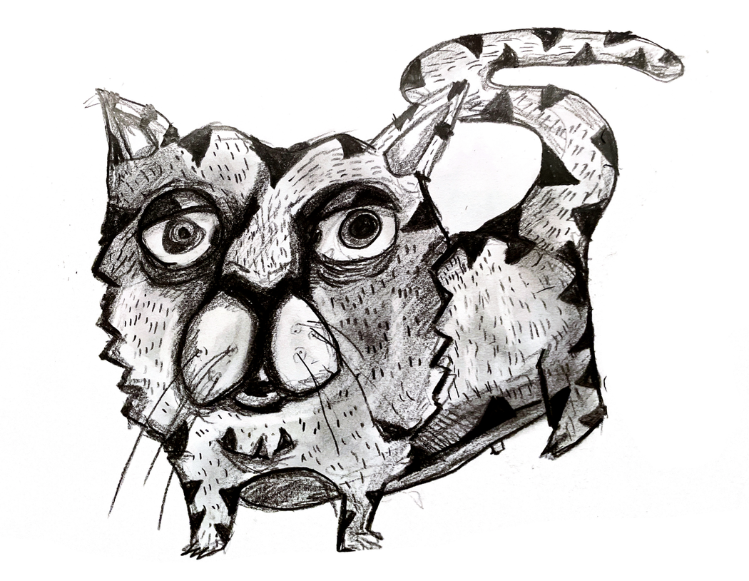The theme influences the subject matter more so than my artistic approach. in my practice. I rely on spontaneity to guide the visual direction of each piece, allowing myself creative liberty. Being present in the moments that I am trying to depict allows for my process to shape itself in most cases. When I was working on my 2024 drawing collection of cats, I took the basic idea of cats, reflected on what I found interesting about them and just found as many possible ways I could accentuate those ideas through each piece in the collection, often just creating one piece after another with those basic touchpoints in mind.