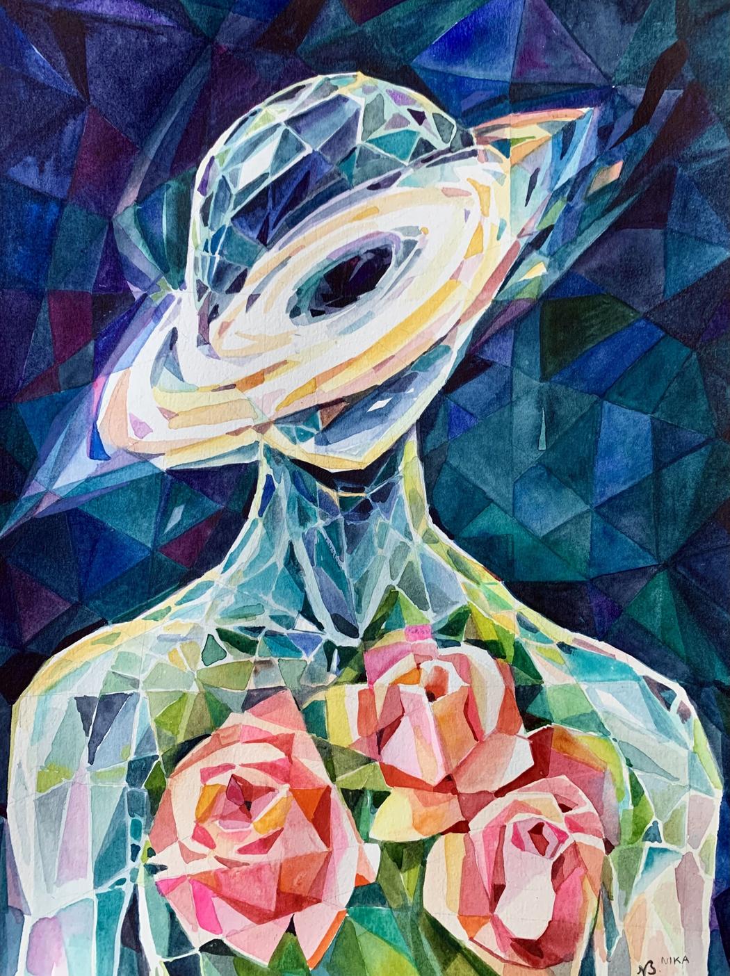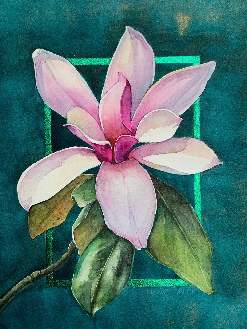 Usually, I have a clear vision in my mind of how the final piece will look, and that vision naturally includes the medium I’ll use. It’s as simple as that. My biggest love is watercolor. I’m fascinated by the process itself: watching the pigments blend and granulate, seeing how particles move across the paper. It’s mesmerizing and deeply meditative. I even make my own shiny watercolor paints and love observing how the tiny sparkles flow on the surface.