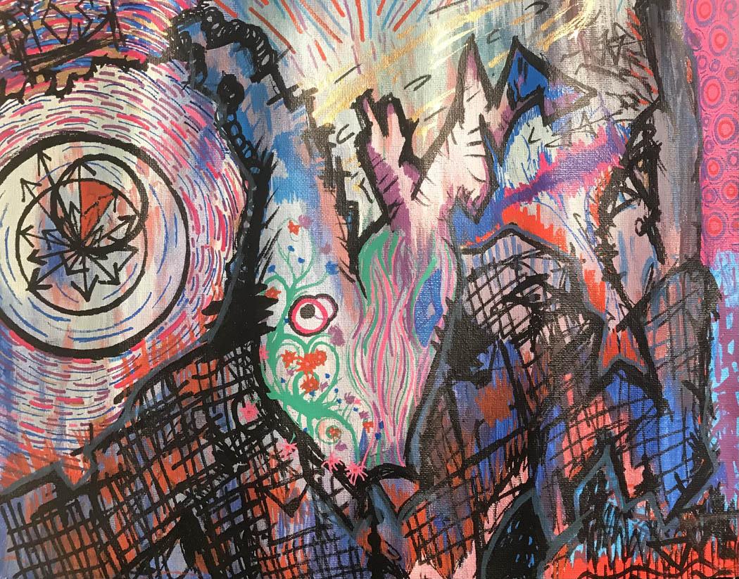 His memory influences my painting in almost every way. Before he died, my sister and he used to pick me up on their days off — they would sip on wine and paint with me. I remember we would try to paint some Bob Ross paintings — they never turned out great… but those were my first memories of painting and creating. My brother Jesus was a weird dude; he had very mystical and ambiguous paintings hanging up in his house that he would create. I take inspiration from those every day. He also dabbled in making music — something I have really gotten into these last few years.