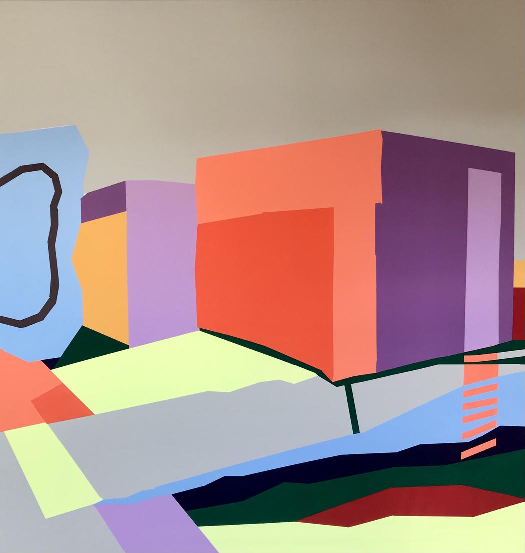 Your paintings feature bold geometries and strong color structures. How do these visual decisions relate to the environment you document?