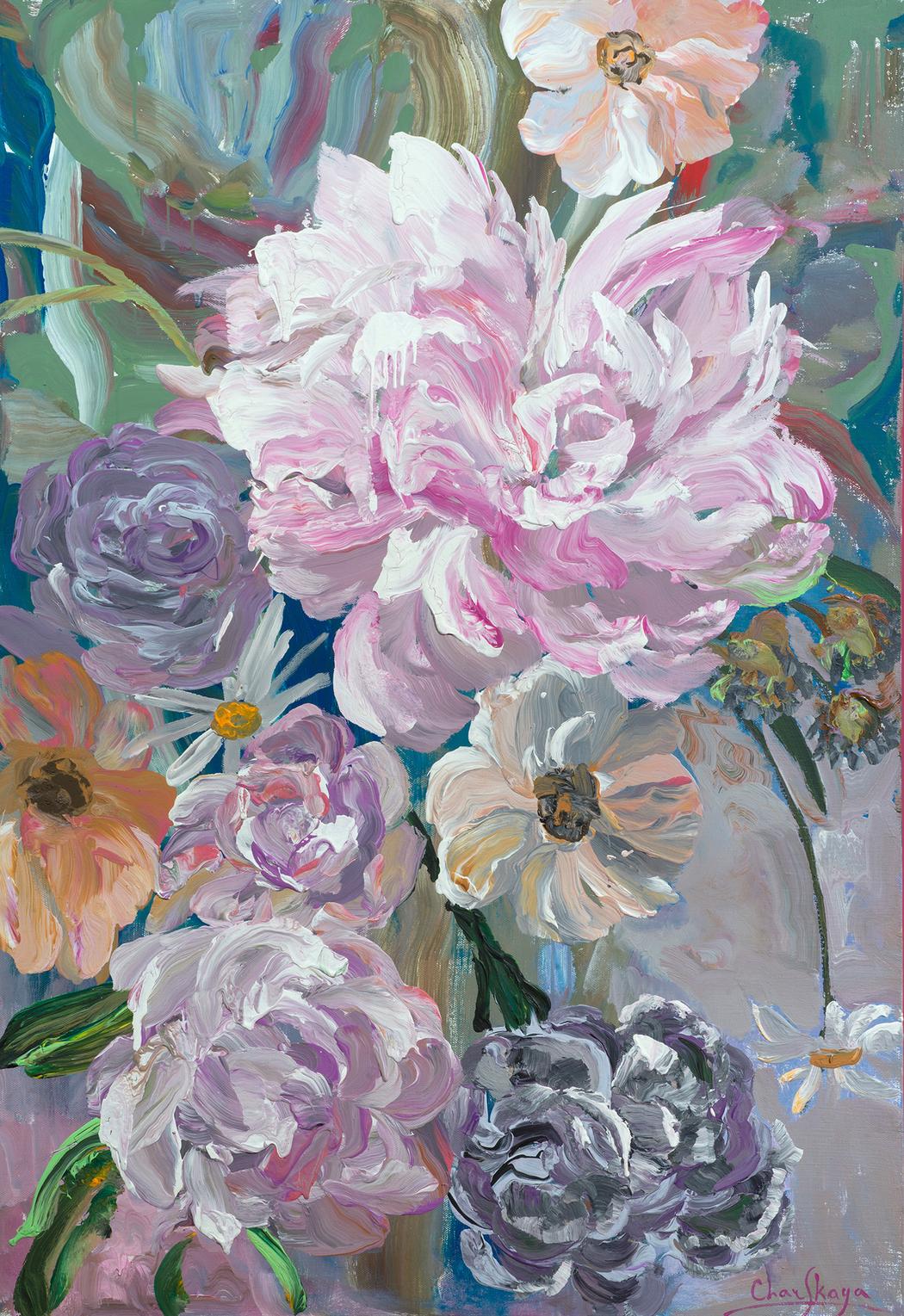 However, I do not depict flowers in a botanical or naturalistic sense. It is important for me not so much to convey the form as to express the idea of the flower — its concept, its inner impulse. Sometimes it is not yet a flower, but it is no longer just an abstraction — something on the border between image and thought.