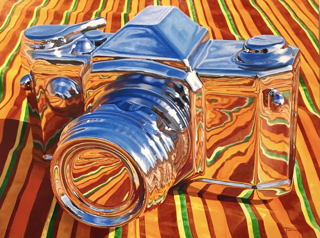 I find that many people are attracted to realistic painting. It substantiates their view of the world. Viewers often have one of two reactions to my work that excite me. Some people can’t believe it’s a painting. I receive questions about how I do it. Do I use chrome paint? Is it hard? How long does it take? The other reaction is how, from a distance, it looks like a photograph, yet up close, the brush marks are visible and it becomes a painting. Both of these reactions are questions about reality and the nature of art itself. I always want people to be entertained and even uplifted when they enjoy my work. When they walk away with some uncertainty about reality or what is possible, that’s a bonus!