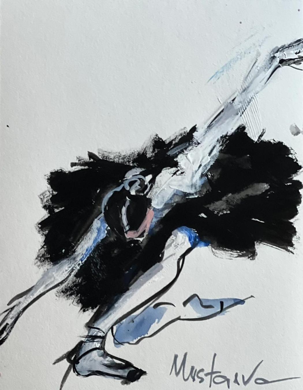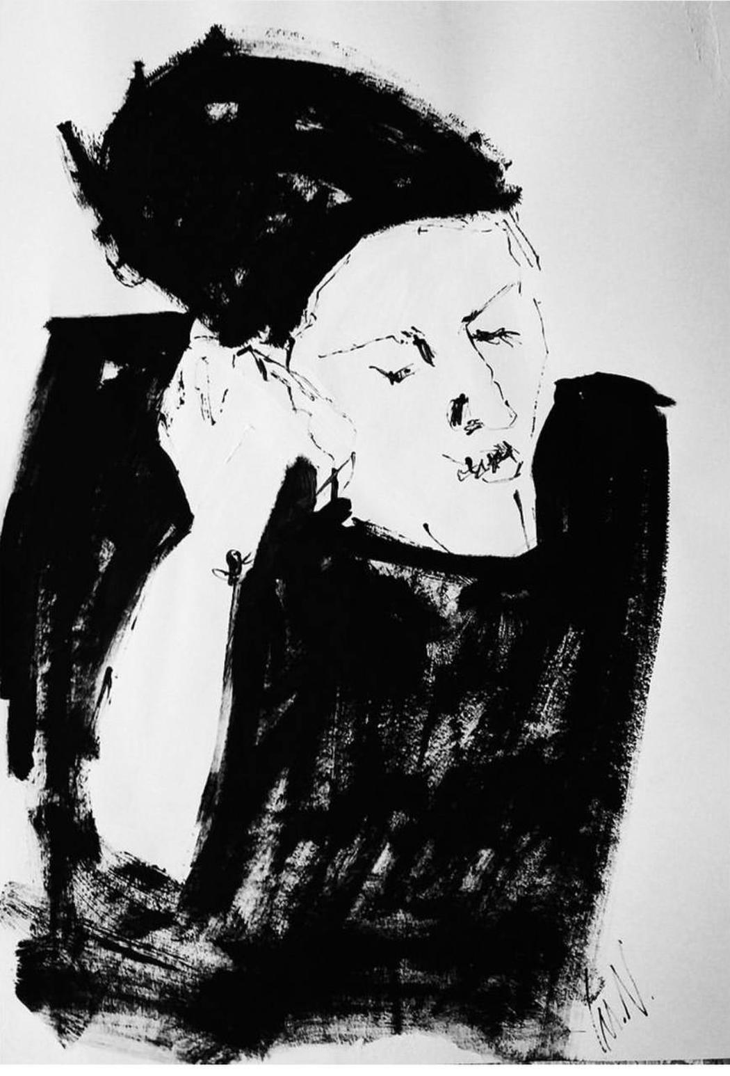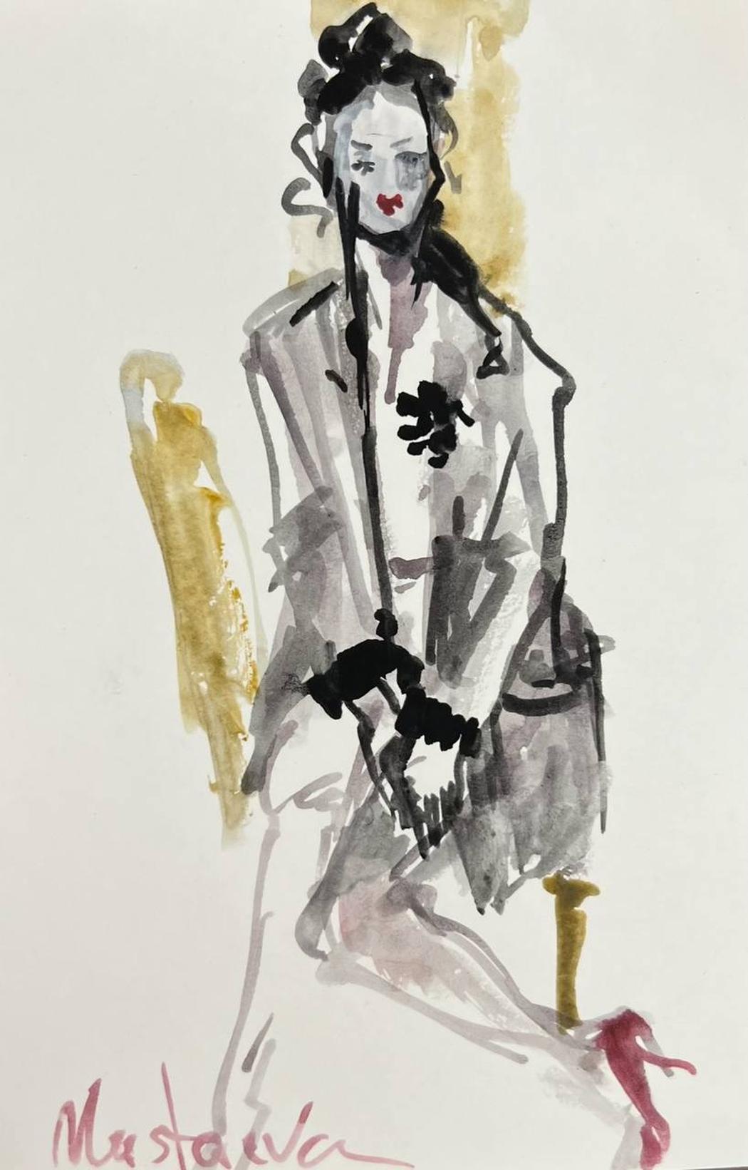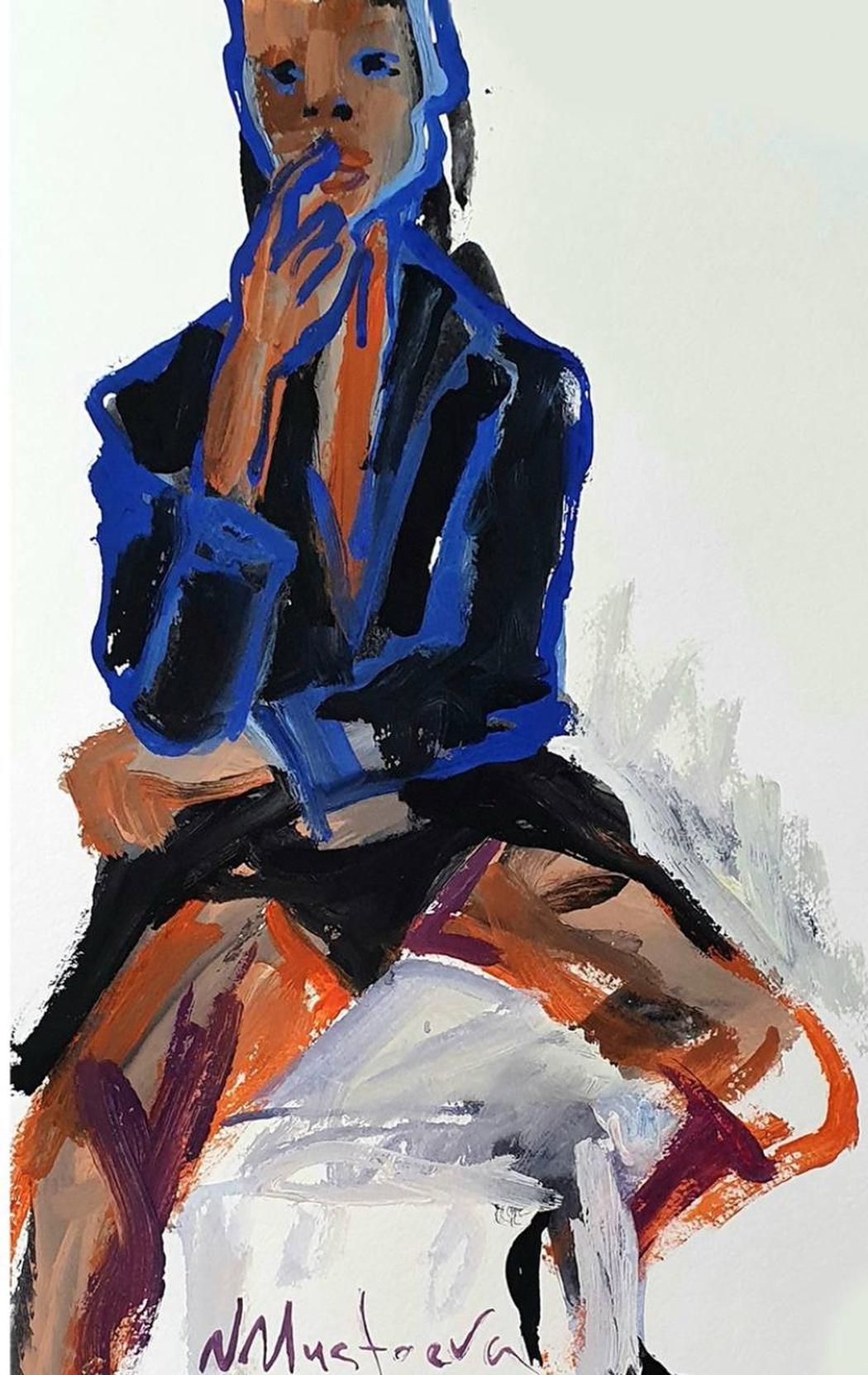 Given my temperament and emotional state, acrylic is exactly what suits me. When I’m at the easel, I can repeatedly layer the paint to achieve the precise shade I want. Acrylic has incredible coverage, which really helps my process. In my graphic pieces and sketches, I always use mixed media. This allows for interesting results: I start with a blot—say, black gouache—and add elements with watercolor to create color accents. This approach strongly defines my style, and my work is instantly recognizable. It’s my unique artistic signature.