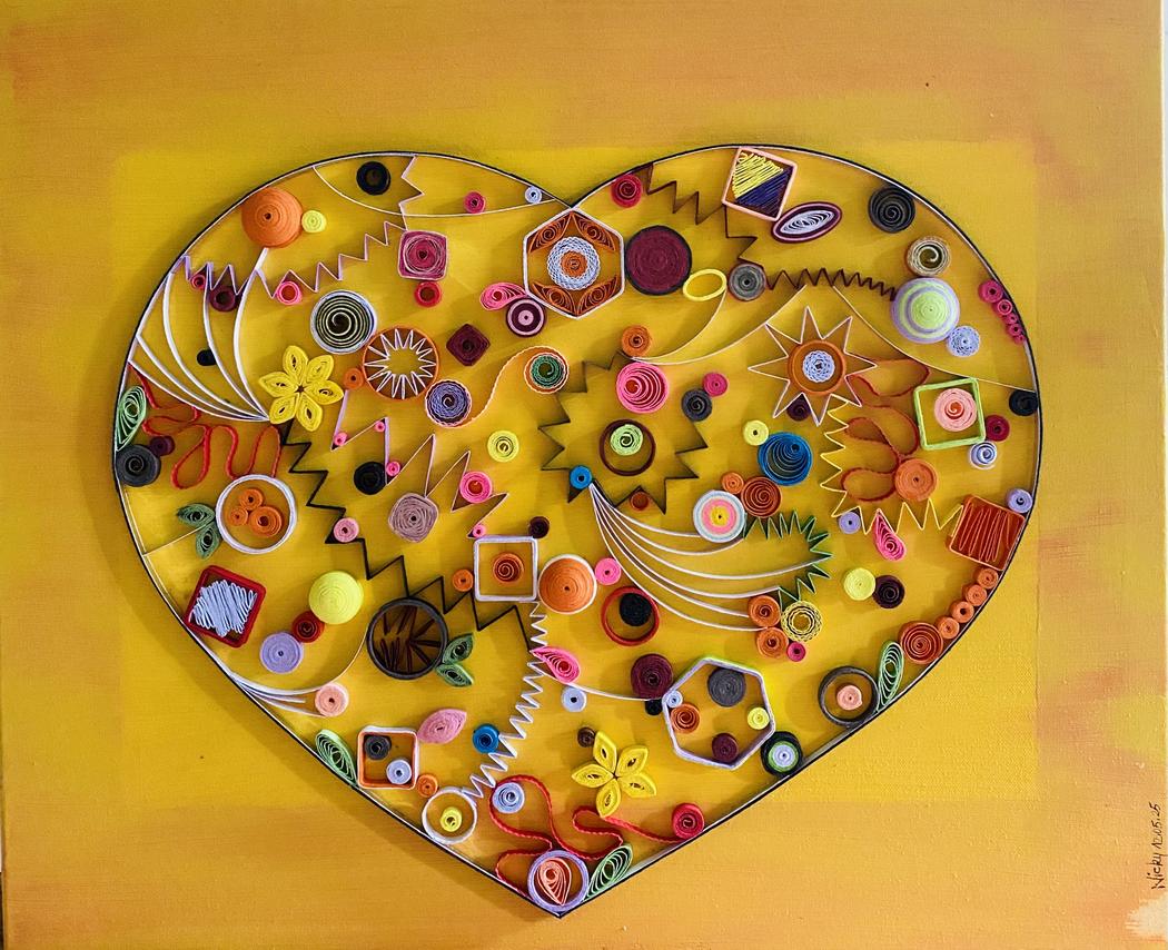 In Creole, “Lyannaj” is a keyword that evokes link, union and connection. Combining quilling and painting is getting out of my creative comfort zone. It is an exploration of the unknown, a quest for novelty that pushes me to think and create differently. My creative process is unique. I start by making the work in acrylic paint, without any thought for quilling at this stage. Once the paint is dry and placed on the easel, my mind turns to the quilling. With strips of paper, glue and scissors, the art of quilling takes shape on the canvas, until the completion of the work. This is how the “LYANNAJ” paintings were born. The fusion of these two mediums is incredibly satisfying for me.