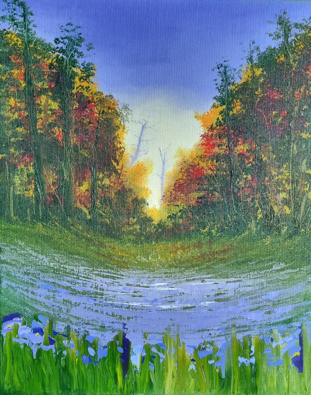 It is an intensely emotional experience centred on bringing my deeply personal inner world onto the canvas. At the moment of creation, the act feels like an intricate process of matching colors and themes that I myself find beautiful. This dialogue is initiated by an inspiration – a distinct memory or a unique feeling- which I seek to translate visually. My hands purposefully use the paint to express the emotions onto the surface. The entire conversation is a vivid, continuous loop where the emotional impulse drives the color choice, and the resulting visual application affirms or adjusts the expression, creating a finished piece that is a beautiful, tangible record of my subjective feeling.