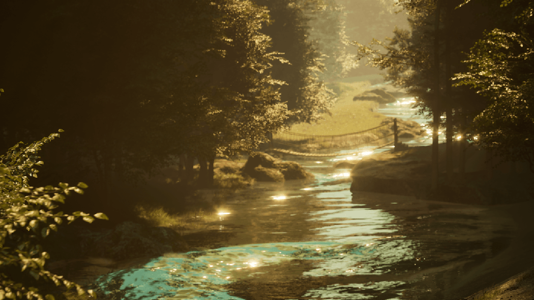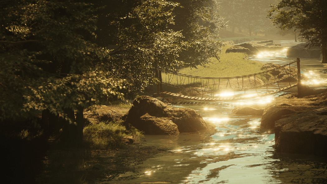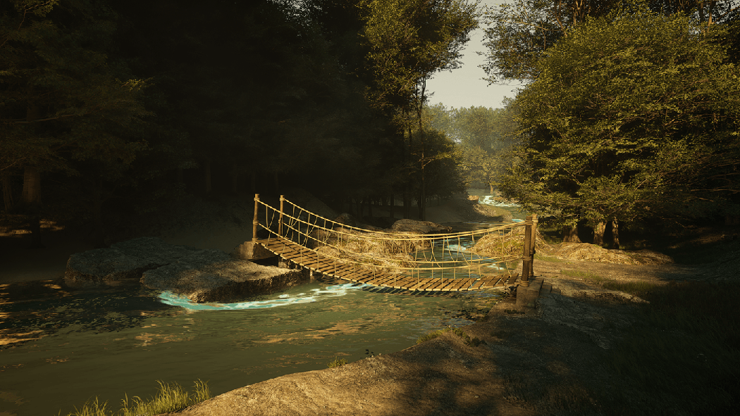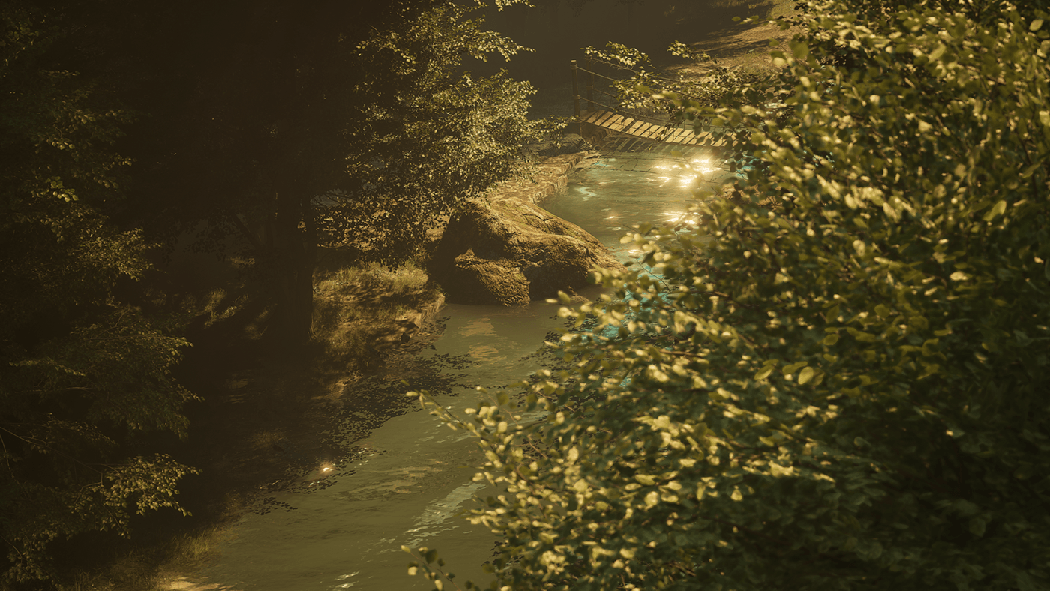 Whereas in Between Shadows, light became something softer and more introspective. The bridge literally sits between shadowed forest and sunlit water, so I used light to capture that fragile balance — a golden glow filtering through trees, hinting at possibility. It wasn’t about revealing everything but about suggesting that clarity exists even when it’s partially hidden. For me, lighting isn’t decoration; its empathy made visible.