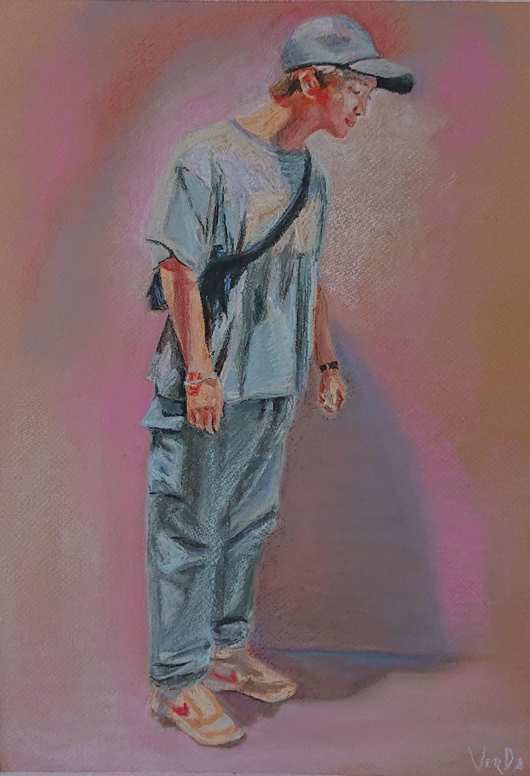 My characters come from all of these sources. I have drawn portraits of Joaquin Phoenix as Emperor Commodus from “Gladiator,” RM from BTS, and a queen inspired by a Korean Empress and a local theater actress, alongside more personal subjects like my grandmother and friends, or random people I discover online.