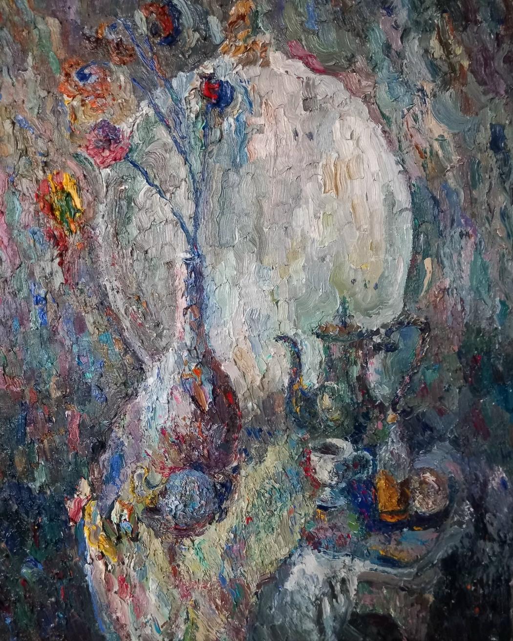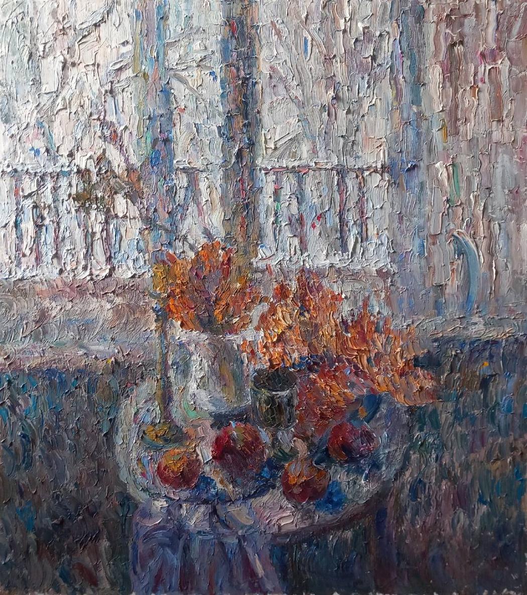 That is why the subjects of my still lifes are often simple, almost humble objects with their own stories: old books, worn-out coffee pots, seasonal flowers brought from the park. I can spend weeks working on a single arrangement, watching how the light changes, seeking the right relationships again and again. It is the luxury of slow observation — something you don’t get outdoors. Still life is always about time — about the fact that everything is transient. Fruits ripen and decay, flowers wilt, light shifts. You are captivated by nature, warmed by its glow, and you try to stop that fleeting moment, knowing it’s impossible. There is something deeply human and touching in that.