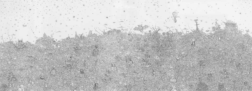 Your drawings are incredibly dense, filled with hundreds of hidden figures and micronarratives. What does this slow, meticulous process mean to you in an age of speed and instant gratification?
