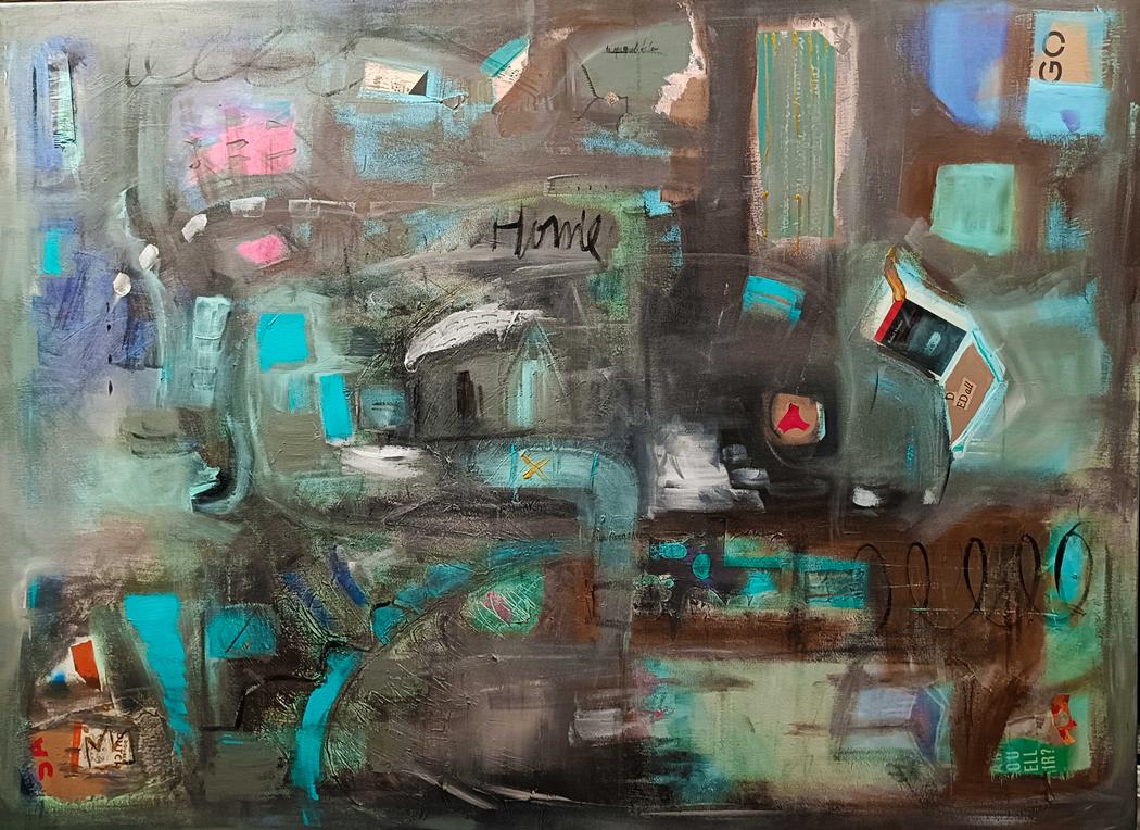 Now living in Spain, I regularly take part in competitions where being selected among so many works already feels like a prize in itself. In 2022, I was awarded First Prize in a competition in the city of Cieza, Murcia, for a piece from the Encuentro series, also created with collage and acrylic. It was deeply fulfilling to travel there and meet the wonderful people who chose my work for the award.
