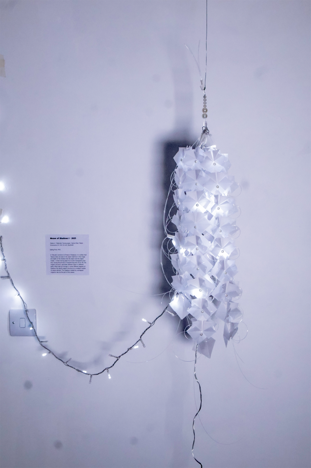 In Weaving Light, Dreaming Form, the pairing of Ketong Xing’s textile-based, light-infused installations with Junying Jiang’s digital illustrations demonstrates Zhou’s aptitude for identifying conceptual affinities across divergent media. The exhibition succeeds in establishing a shared vocabulary of “in-betweenness,” where both practices operate within transitional states. Yet, the curatorial framework relies heavily on poetic language—light “drifting,” narratives “breathing,” perception “softening”—without sufficiently interrogating the structural or socio-political implications of these metaphors. While diasporic identity and cultural displacement are frequently invoked, they often remain implicit rather than critically unpacked.