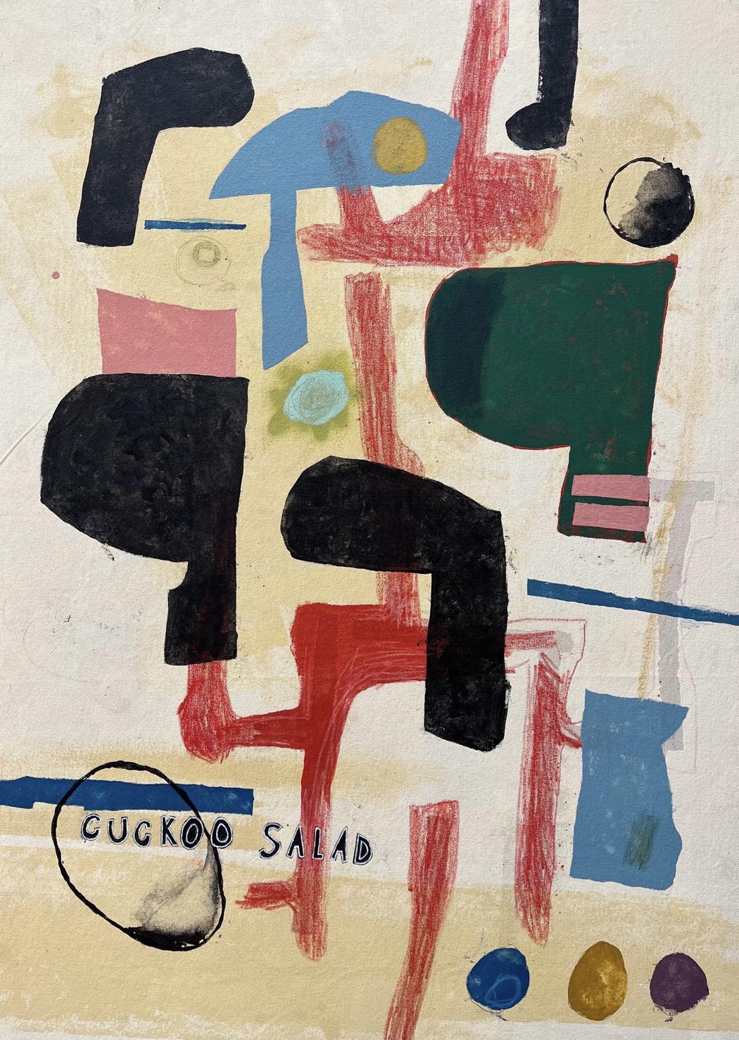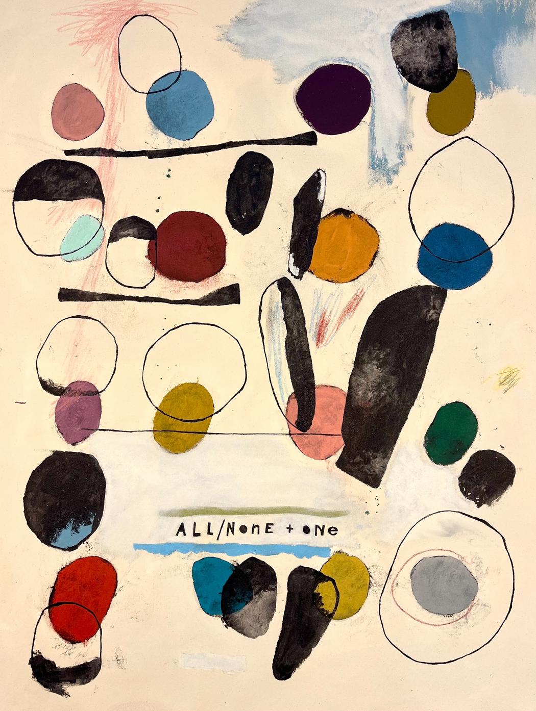 Each painting starts by creating ‘a problem’ visually. Then the next task is to fix the problem. This process of chasing the problem around the canvas happens as many times as it needs to until a sort of visual harmony is reached. I see my work similar, structurally, to how music comes together. A song is created by multiple instruments /sounds coming together in a unique way. Each player has to pull their own weight so the final result can be fully realized. I interpret each color, line, brushstroke, and shape to be a different instrument, each playing its own part, creating a visual ‘song’.