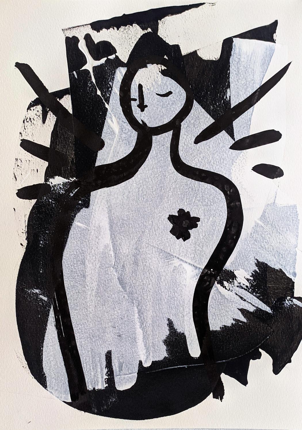 My process begins intuitively, guided by impulse rather than preparation. I work without sketches, allowing the image to emerge as a quiet transmission of inner experience. What remains unresolved—between what is shown and what is suggested—invites the viewer into their own reading. The titles stay minimal, because the work is meant to be felt before it is understood.