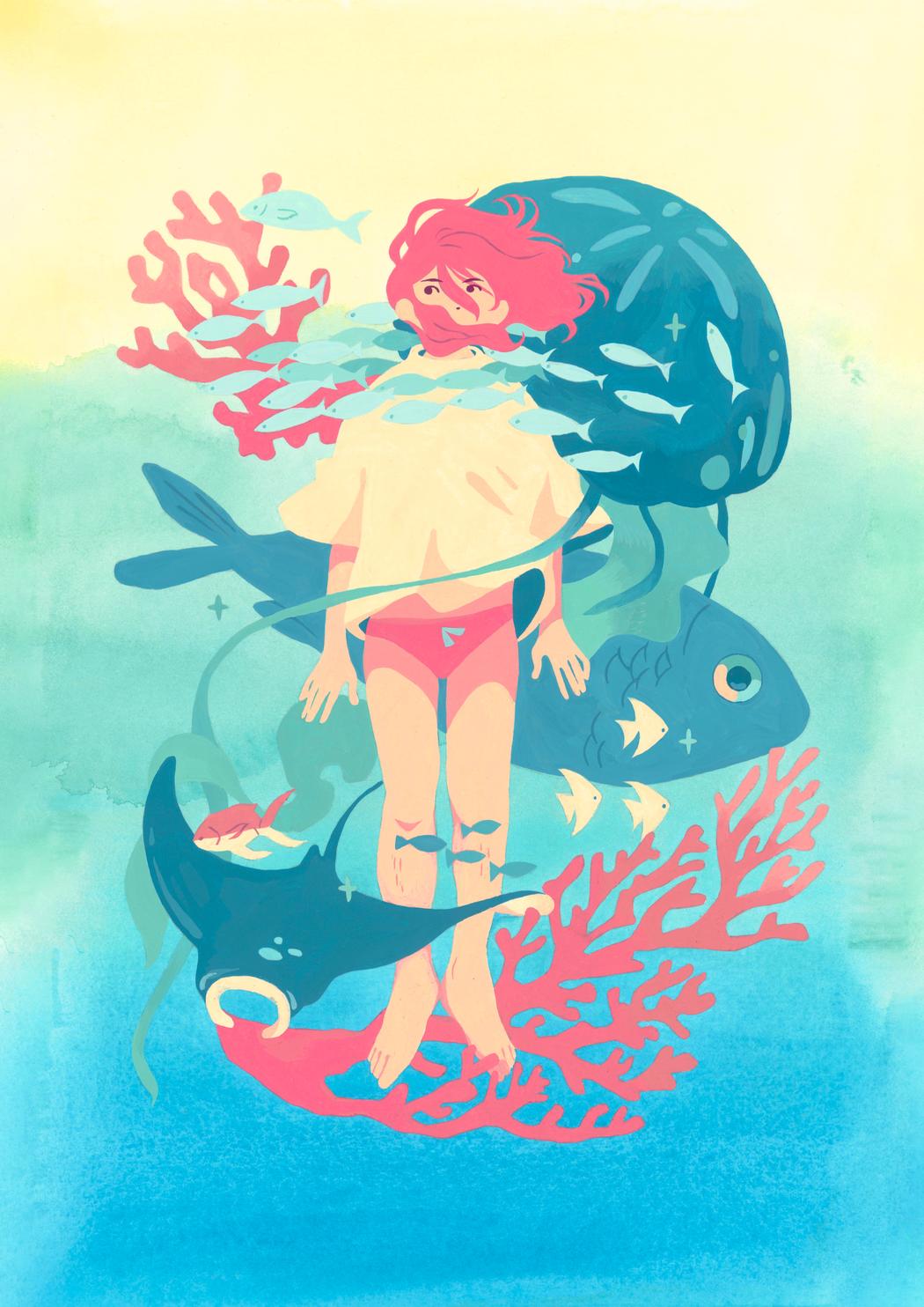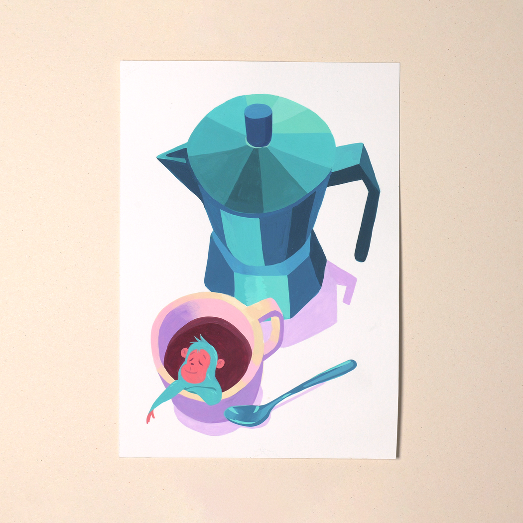 After exploring Posca markers and digital illustration, I turned to gouache for its relationship with the unpredictable. I love navigating that tension between technical control and the ‘letting go’ that traditional media demands. Gouache allows me to achieve highly saturated, vibrant flat tones that are essential to my creative process. This organic texture and depth of color give my work a dreamlike yet tangible quality that I cannot find anywhere else.