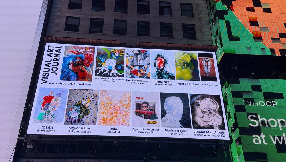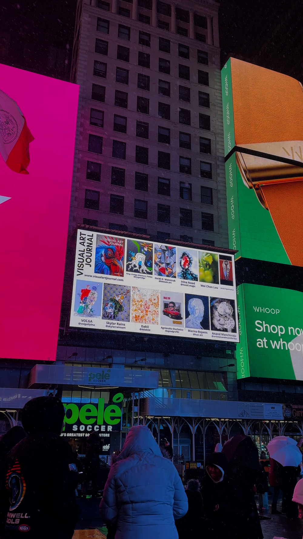 On January 18, Visual Art Journal proudly presented the Thirteenth Times Square Billboard Showcase — a vibrant celebration of global contemporary art in the heart of New York City’s Times Square. The towering digital billboard illuminated one of the world’s most iconic cultural intersections with a rich diversity of artistic expressions, including painting, mixed media, digital art, and photography. Together, these works reflected the multiplicity of voices and perspectives shaping today’s international visual art scene.
