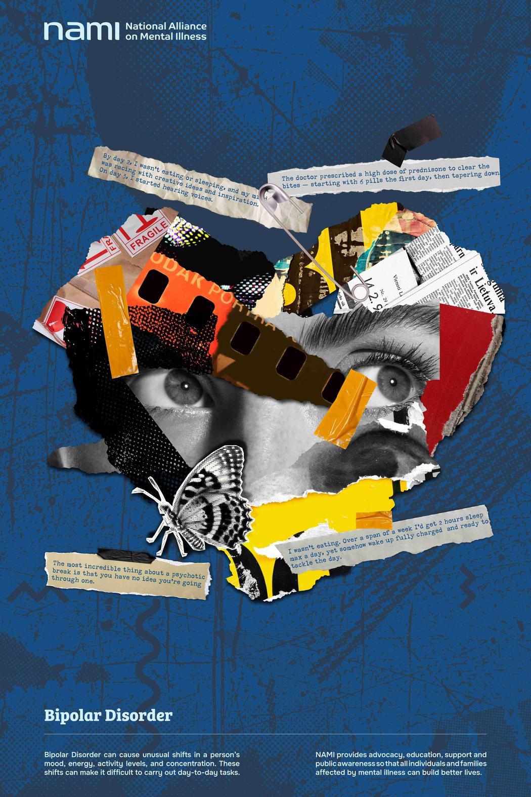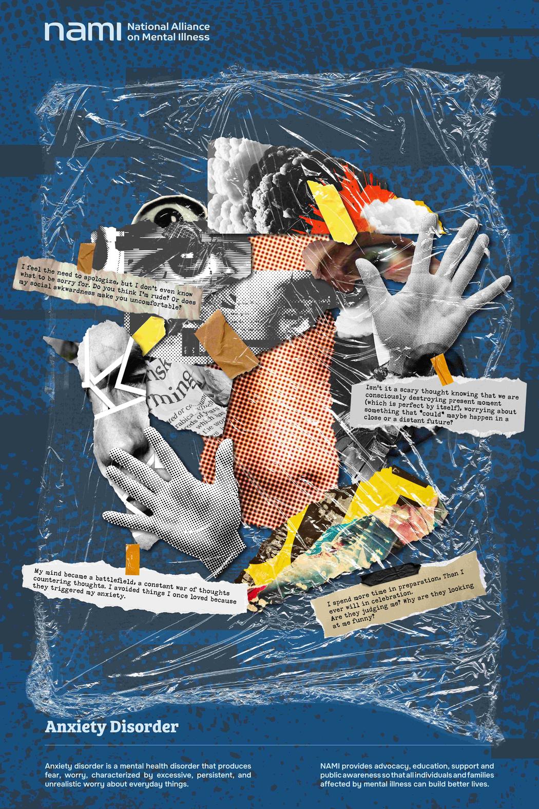 In your NAMI rebrand project, collage becomes a central visual language. Why did collage feel like the most honest way to represent mental health experiences?