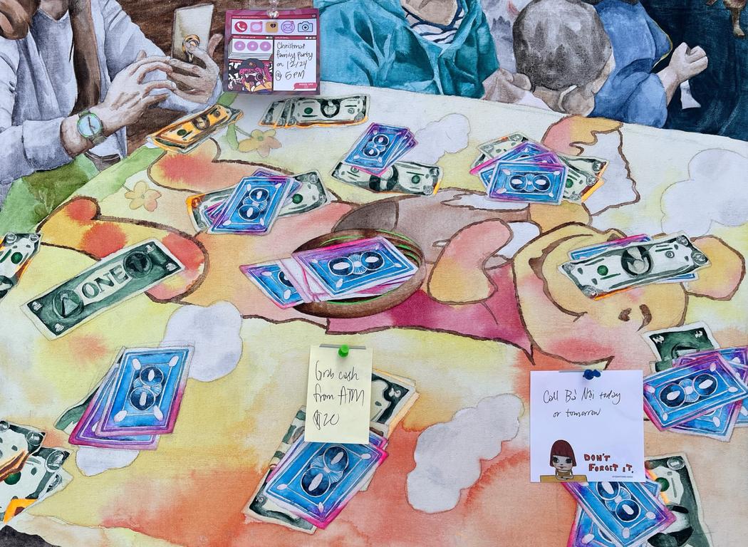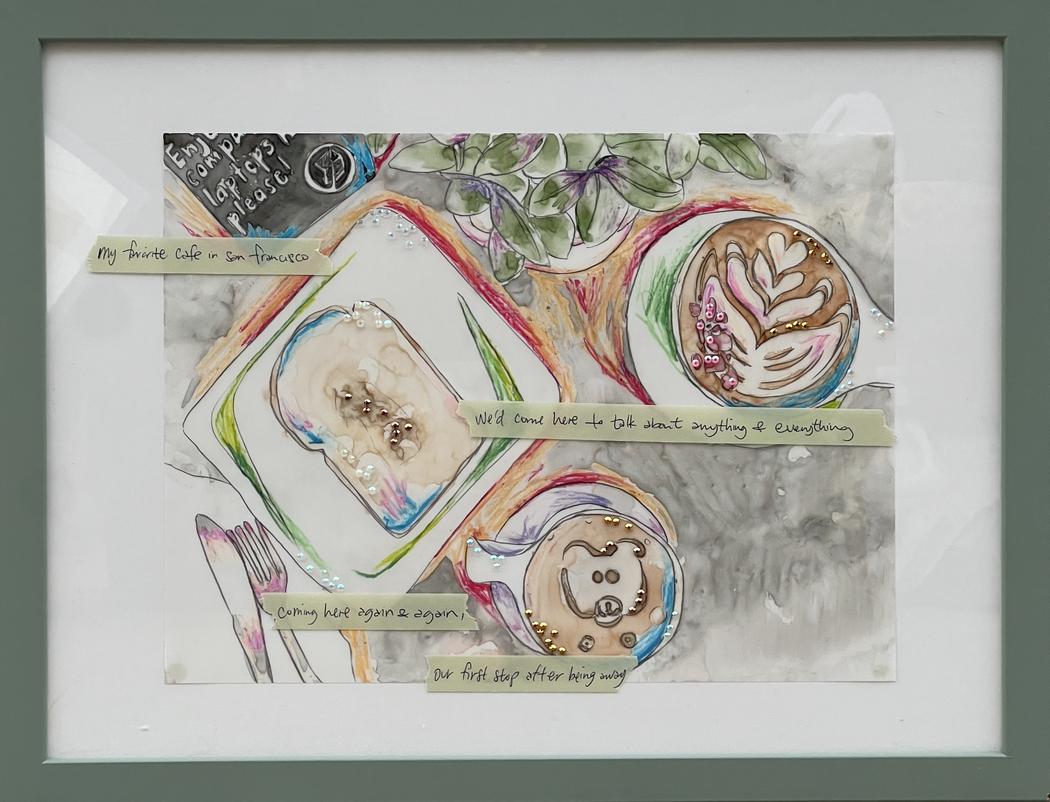 You often depict ordinary moments – food, cafes, shared tables, workspaces. What draws you to these quiet, intimate scenes rather than grand narratives?