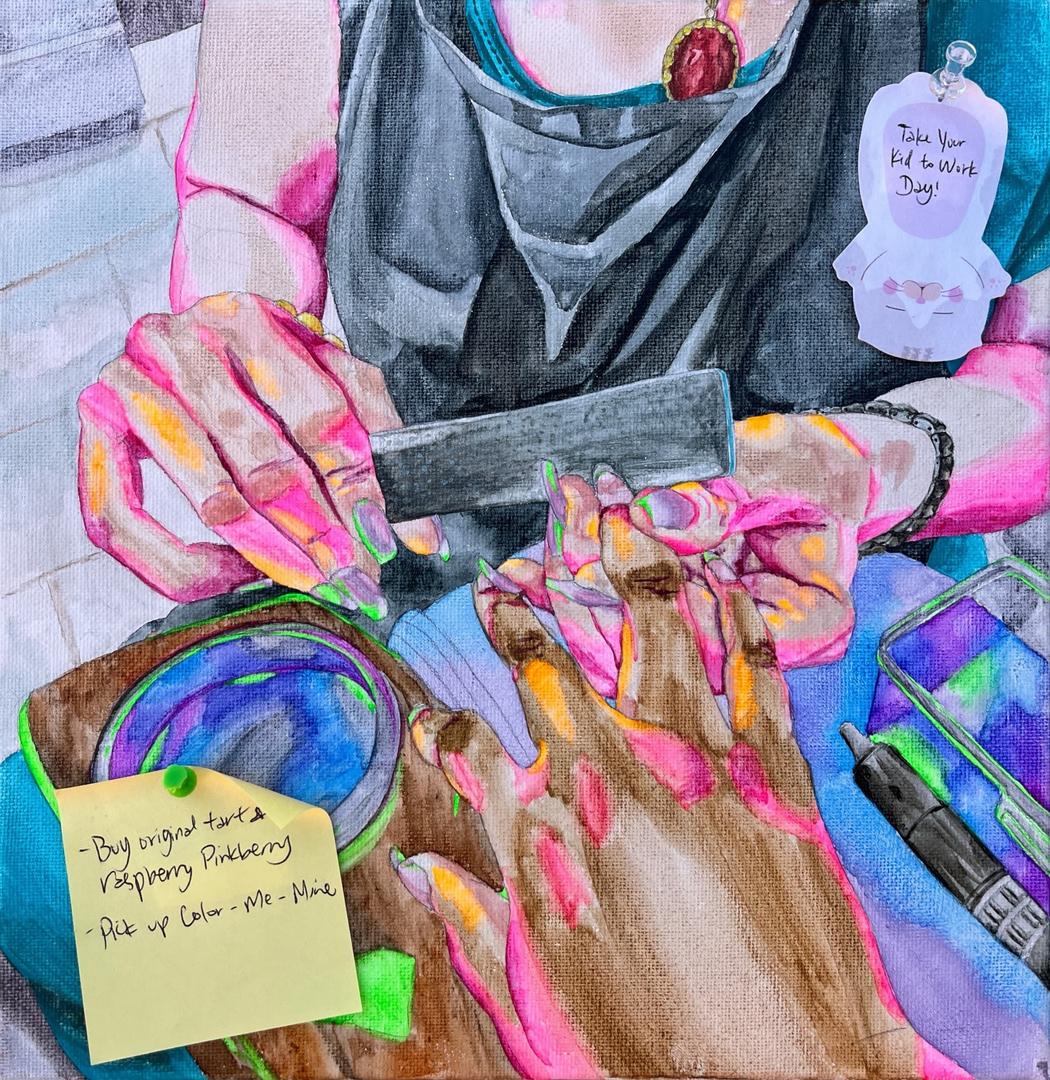 There is beauty in the mundane. I love looking at these small moments with a more critical eye. Grand gestures are, undoubtedly, great, and are what makes a splash in the mind’s eye. However, a life consists of smaller, more quiet moments of connection that can be easy to forget. If I do not write these small moments down, I forget them. Similarly, I want to paint moments so that they are not forgotten.
