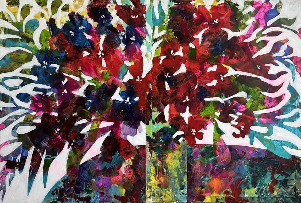 In painting, heightened colour and contrast paradoxically allow you to look at your feelings from the outside, as if carrying them out into the open and seeing them differently. In that shift, you begin to notice that not every emotion or state has to be interpreted exactly the way we’ve learned to interpret it internally.