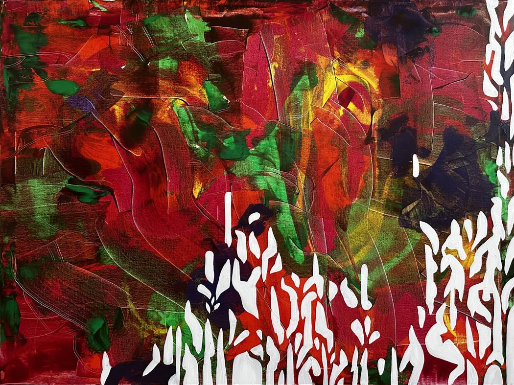 In my work, colour often carries tension, remaining bright and direct, like inner experience at its most intense. The composition, by contrast, can be calm and contained, holding balance, offering a structure against which colour becomes sharper and more audible. That’s how a sense of external clarity can emerge while something living continues to pulse underneath.