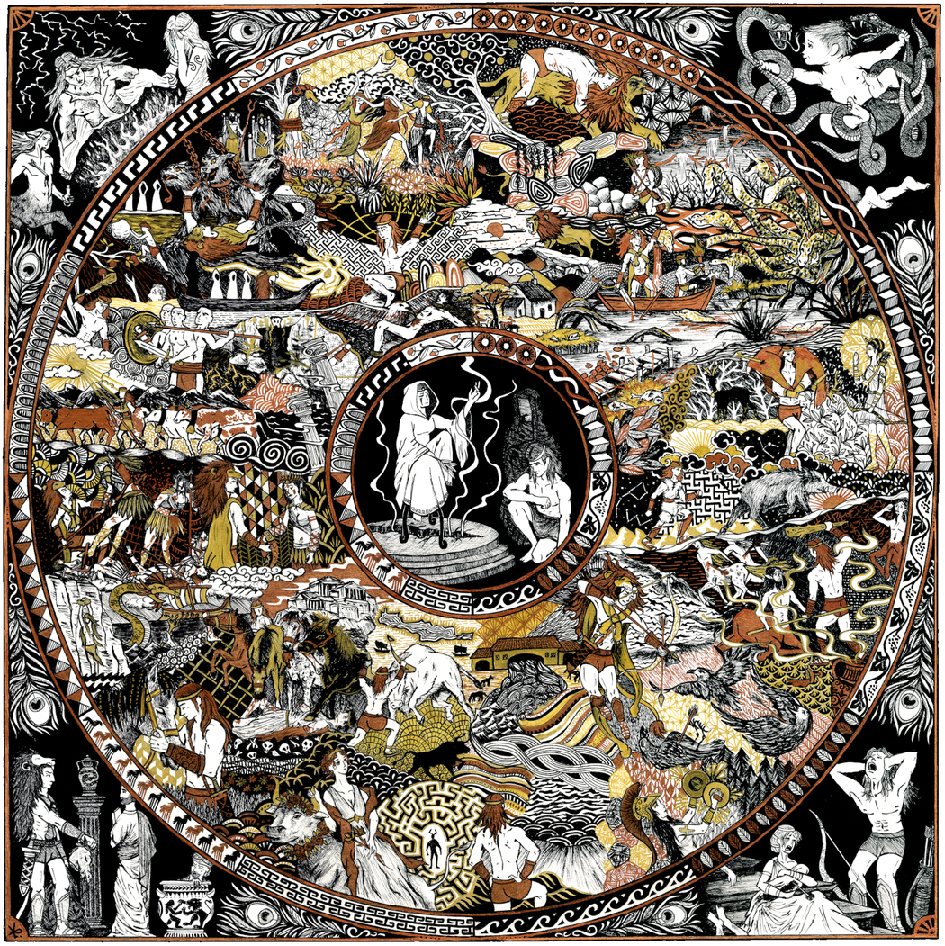 I can use another metaphor to explain my approach: comics. My artworks are like a comic book made of only one panel that summarizes a myth, a novel, or a study. I design them with a specific reading direction: circular, from bottom to top and vice versa. Some of my works are structured with friezes, whose role is to guide the spectator and to guide me during the artistic process. For instance, you can read my illustration of the 12 Labors of Hercules like a clock (the 12 hours of days and nights), following the 12 friezes that outline the 12 labors accomplished. I myself followed this clockwise structure while carrying out the drawing. Reading directions are at the core of my artistic approach. My works are dense and profuse, but very organized. I am driven to set order and achieve an overview.