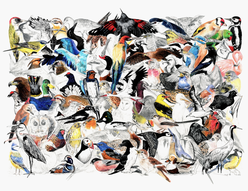 More recently, your work has turned toward ornithology and the illustration of birds. What sparked this shift, and what do birds symbolize or represent for you within your broader artistic universe?