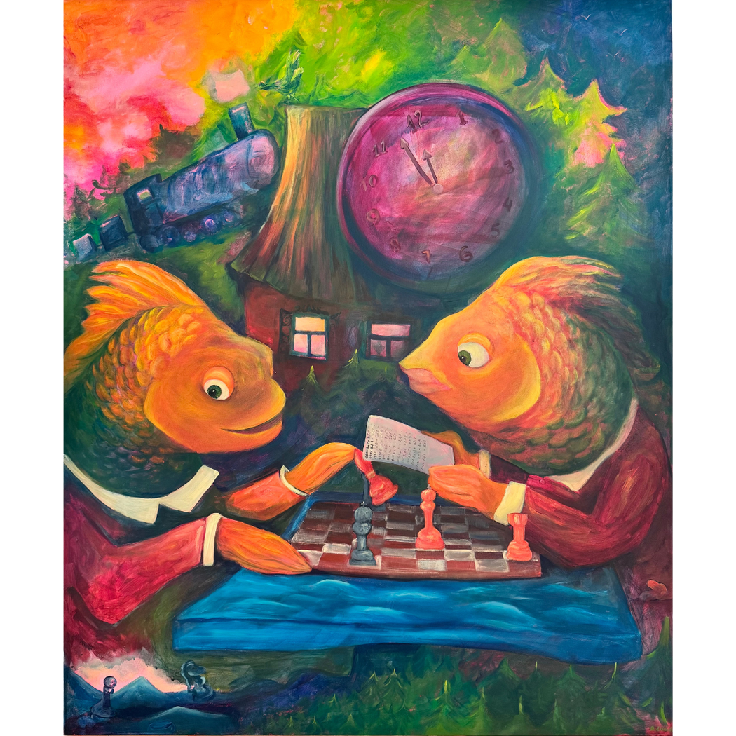 Fish, bicycles, suitcases, and Soviet-era objects recur throughout your paintings. How do these symbols function for you – are they personal memories, collective signs, or evolving metaphors?