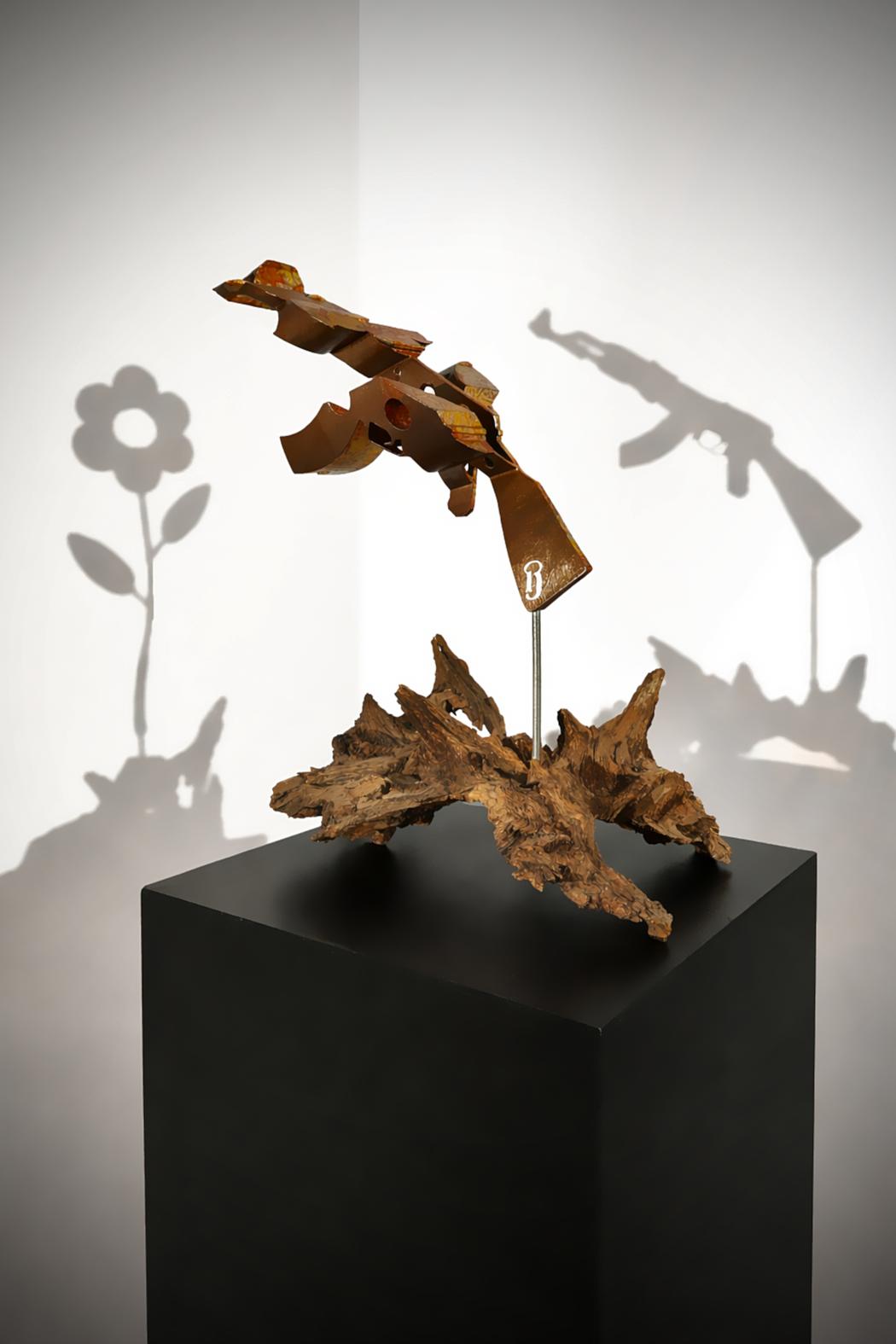 Being a metamorphic sculptor means embracing profound transformation. Just as a caterpillar becomes a butterfly, my works do not merely distort an image as anamorphosis does: they change in nature. For example, a weapon becomes a flower when one changes angle. Philosophically, it reminds us that by changing perspective, we transform ourselves. And like the butterfly, art invites us to rise, free… Art gives us wings.