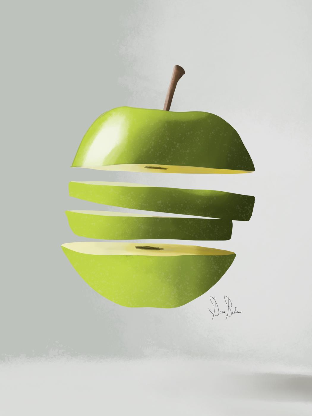 It’s funny, I never pictured myself drawing this kind of work. I used to want to draw skulls and gritty, grungy stuff. Then I took a Procreate class by Freya.art, and the very first project was… an apple. I honestly surprised myself with how it turned out and how relaxing it felt to draw. The class focused on nature and fruit, and something about it just clicked. It felt natural in a way I didn’t expect.