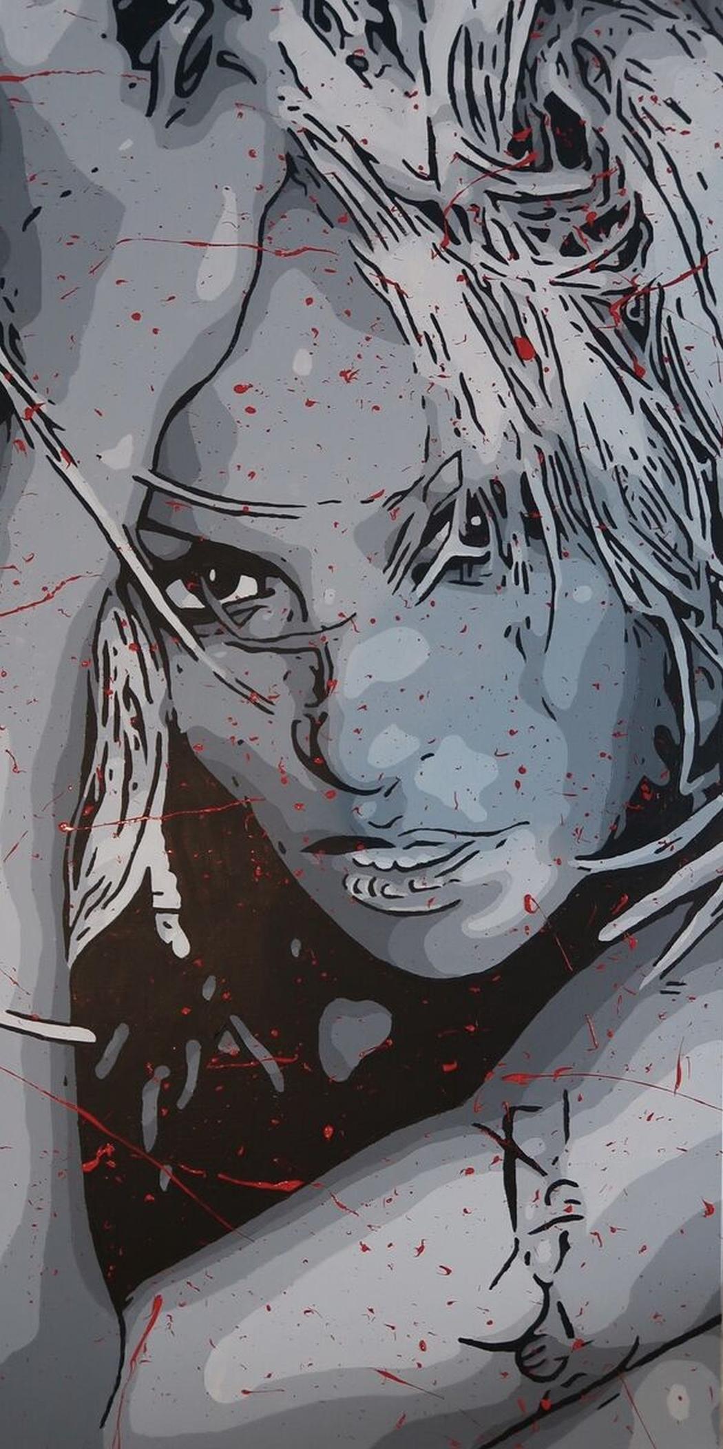 My paintings in color are often an explosion of energy and can feel intense or busy. I balance this with black-and-white works, which are calmer and provide a visual contrast in exhibitions. The use of color brings immediate vitality and presence, while the monochrome pieces convey a quieter, more introspective energy. Shifting between the two allows me to explore different emotional states and gives the overall body of work a dynamic rhythm.
