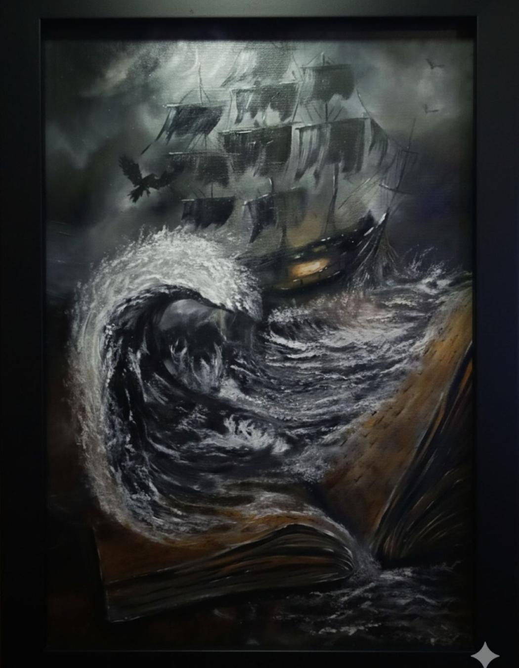 They emerge from a combination of lived experience and intuition. Some themes are consciously present from the beginning, while others surface through the act of painting itself. The process often becomes a way of understanding and holding those emotions rather than defining them. My paintings have a romantic vibe and some include love whether its a Guardian protecting his love or a Painting of a book with ship and ocean are all romantic in different ways. So the story is differant for every viewer.