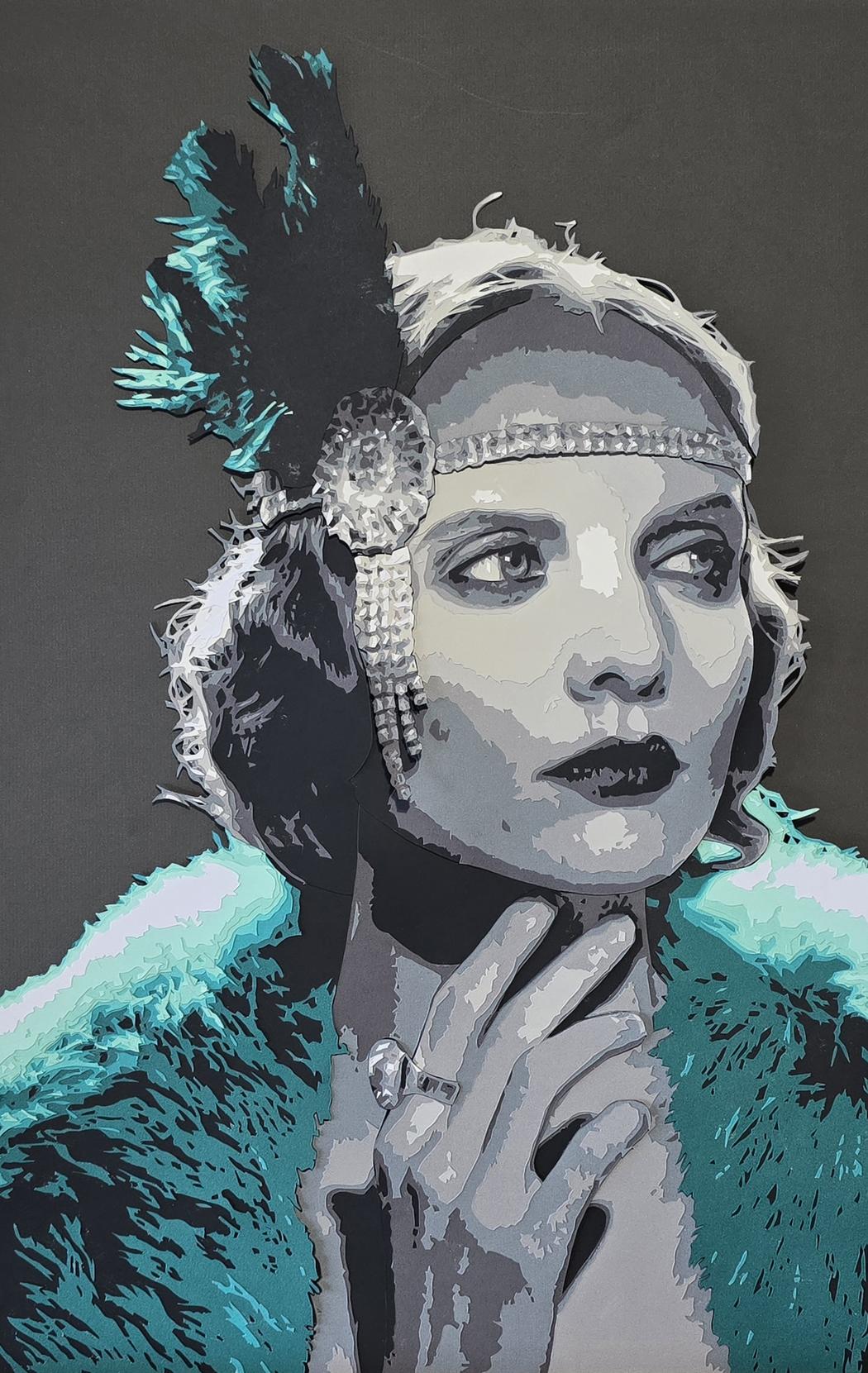 Up until recently, I have always used the color of the reference photo as my guide. With limited color options it may not have been an exact match, so this gave me artistic license and the challenge I enjoy. Skin tones are frustrating as they are hard to match especially when most of my pieces need 5 to 8 different values of the colors. I did a few in just black and white, but I always loved working with colors. I decided to mix the two and complete the portrait in black and white but chose a single color to highlight the portrait. I picked the color palette first, then found the subject that best fits that color. This led to an art deco teal for “Flapper”, the calming and hopeful green for “Lady in Green”, and the contradictory yellow for “Maiden”. It depends on what colors I can get a hold of.
