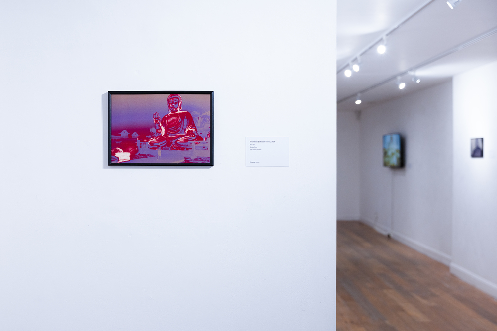 Within East Asian cultural traditions, Buddhist statues have long symbolised stability and permanence, placed within fixed spatial structures to uphold faith and spiritual order. In Xiao Ge’s visual narratives, however, these images have detached from their established positions, entering virtual realms and psychological landscapes. Sacred figures once static are reorganised within digital environments, transforming into emblems of spiritual migration.