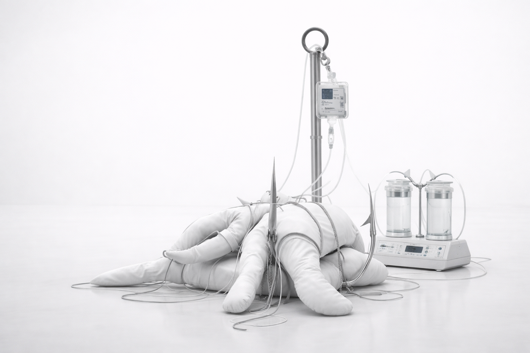 My engagement with medical technologies operates on both conceptual and personal levels. Conceptually, these systems represent structured mechanisms of care, control, and survival — frameworks that regulate bodies and define thresholds of life. At the same time, my interest is shaped by lived observations and experiences, both within my immediate surroundings and in broader social contexts. These encounters inevitably inform the way I approach such materials, allowing the work to move between abstraction and embodied reality.