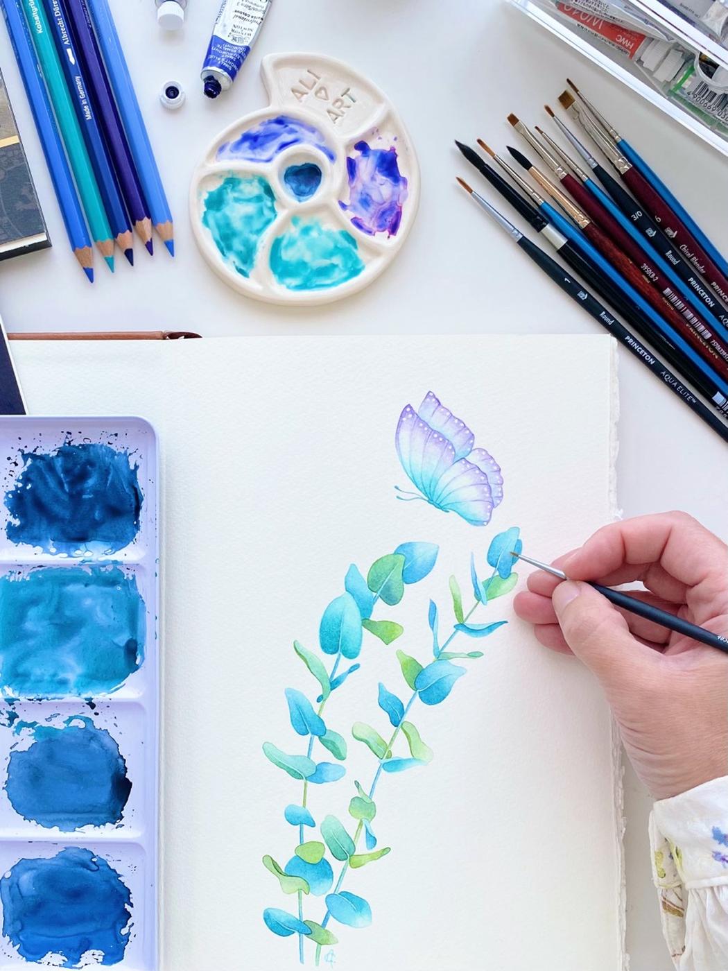 Manuela Prince (Alma Colours) | Butterfly and Eucalyptus Study
