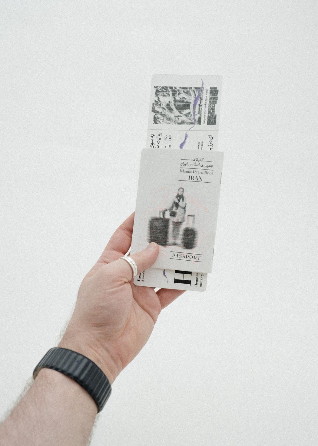 This project uses hand-crafted objects like passports and boarding passes as key elements. What do these objects symbolize for you beyond their functional role?