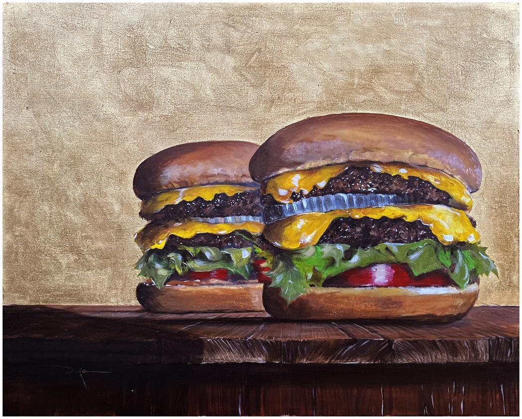 The key difference is that instead of referencing vanitas symbolism, I position contemporary food icons, like the cheeseburger, as artifacts of modern desire and culture. The act of elevating such a commonplace object disrupts expectations and invites the viewer to consider its aesthetic and cultural weight.