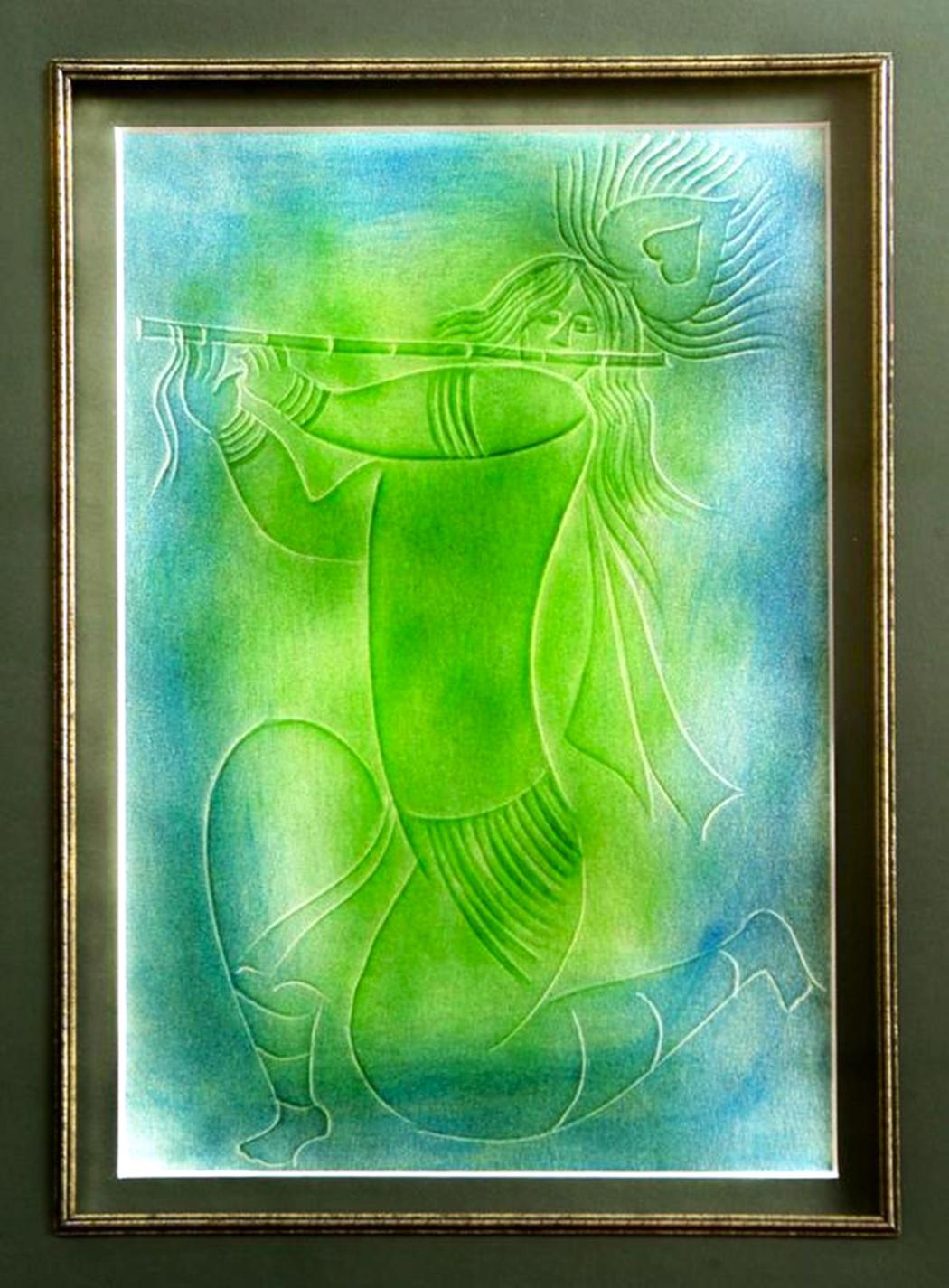 What makes this style truly evocative is the unconventional shading process. In this method, wax-based powder colours are spread over a cloth, and the embossed artwork is rubbed over it with different pressure points to generate unbelievable depth and textured effects. This combination of creative engraving and wax shading transforms each piece into a mystery, adding an element of emboss that pushes the image beyond the confines of two dimensions into a 3D artistic illusion. It takes tremendous patience and immense concentration—sometimes days—to etch distinct details that capture the spirit of human emotions, divine existence, and intricate floral or animal patterns. This unusual yet unique style doesn’t just represent my subjects; it breathes a tangible, sculptural life into them, making the invisible textures of my imagination visible and touchable.