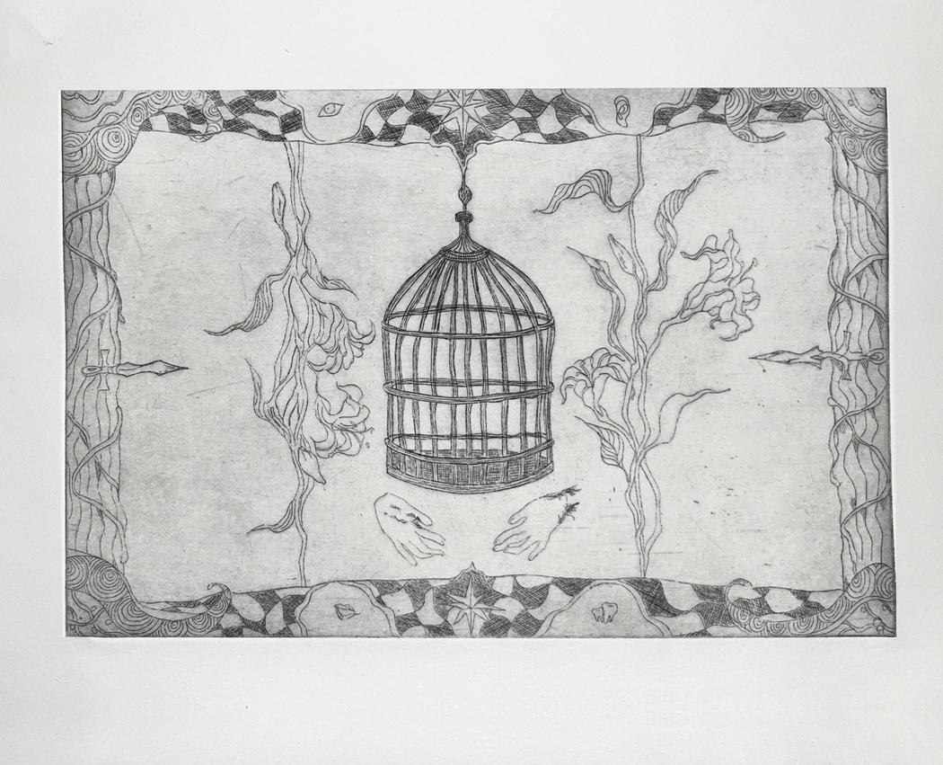 In terms of “language,” I feel that my paintings tend to present more complete and continuous narratives. Each work is like an open door into a story. In printmaking, however, I am still exploring its potential, and tend toward more fragmentary and symbolic expressions: a birdcage, a tiger, a collapsing castle. These feel like close-ups of specific elements within a larger story. I present them, but do not explain them.