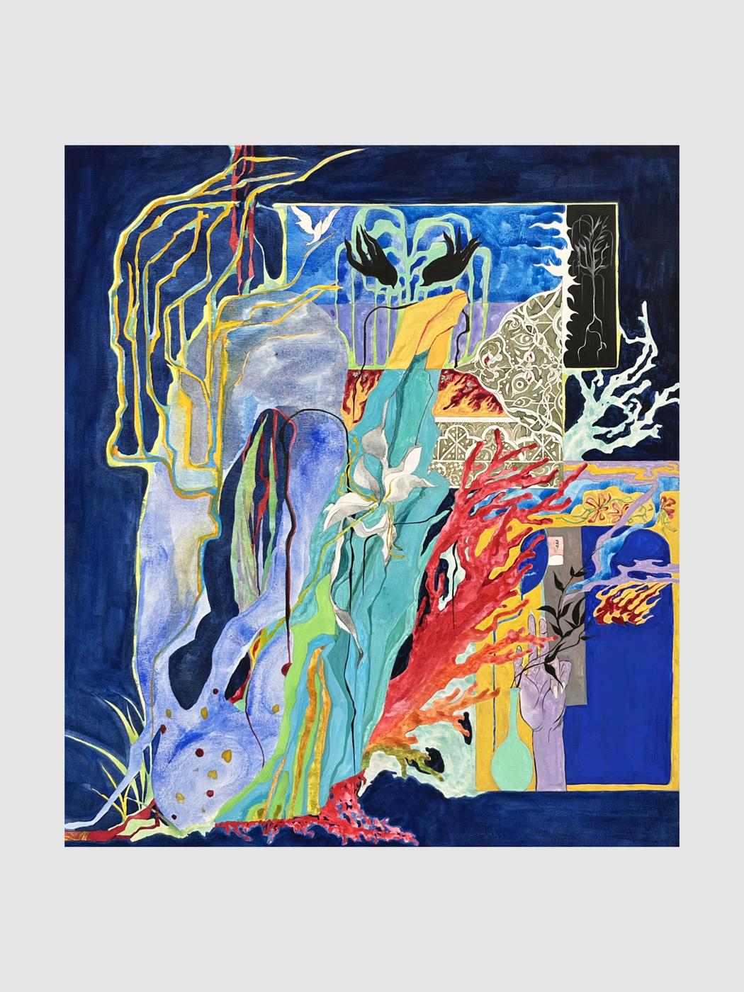 Each painting feels like a ritual. I prepare offerings (canvas, pigments, digital drafts, my full attention) and hope for a desired outcome.