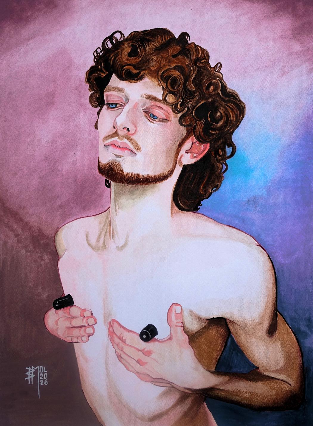You often depict men in vulnerable, sensual, or intimate moments. What emotions or ideas are you trying to convey through these portrayals?