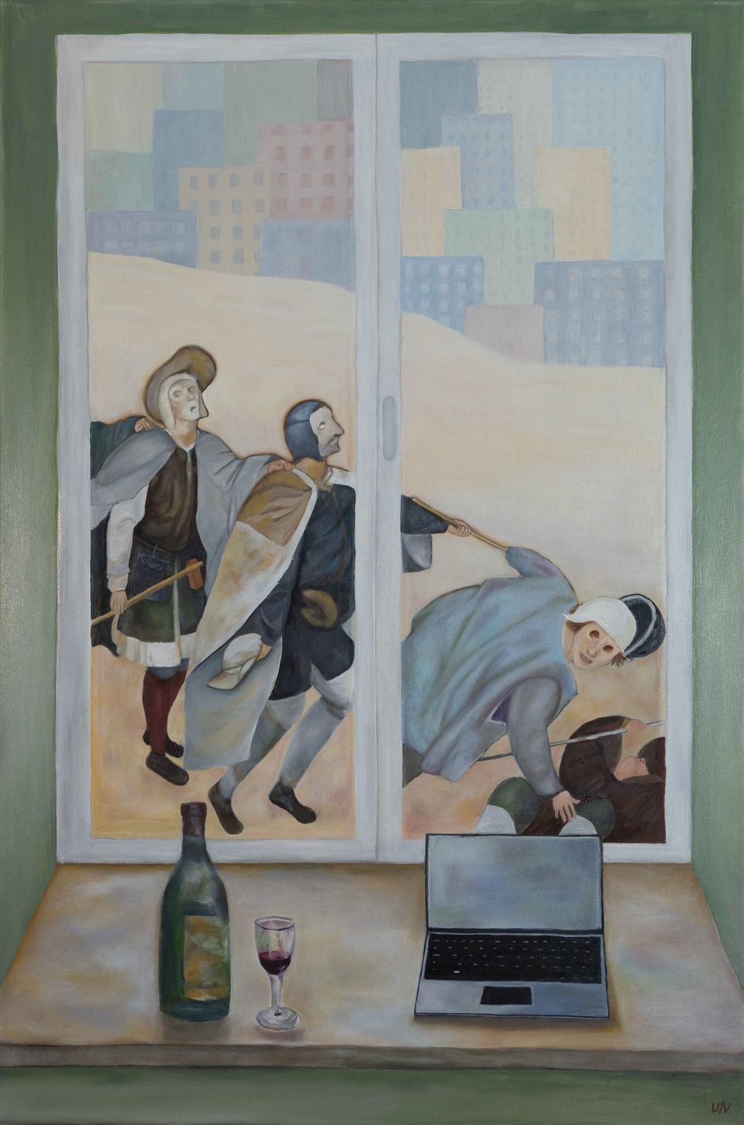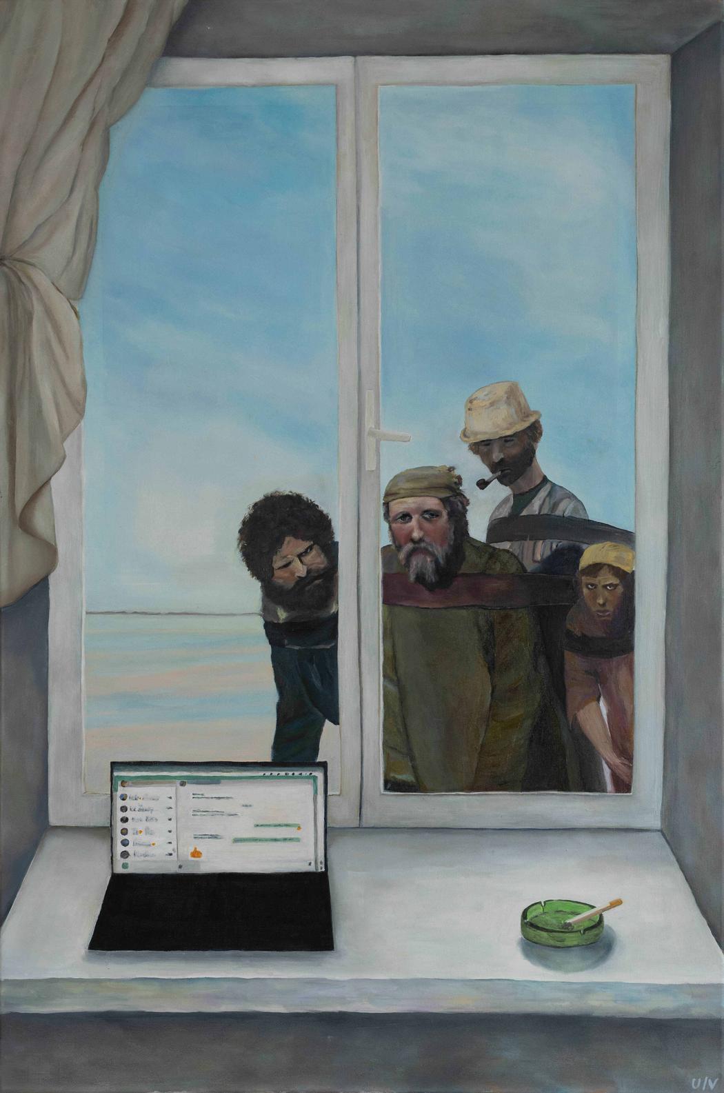 Initially, the window in my art served as a symbol of the division between personal and public spaces, reflecting my introverted nature and the challenges I face in interacting with the outside world. Over time, it has also come to represent my connection to the world—a lens through which I observe from a comfortable distance. I communicate silently through my paintings, viewing the world the way I feel genuine. Additionally, the window has evolved into a metaphor for the shifting boundary between past and present. In my work, I reference well-known classical paintings from European, Russian, or Finnish art, reinterpreting them in a contemporary context.