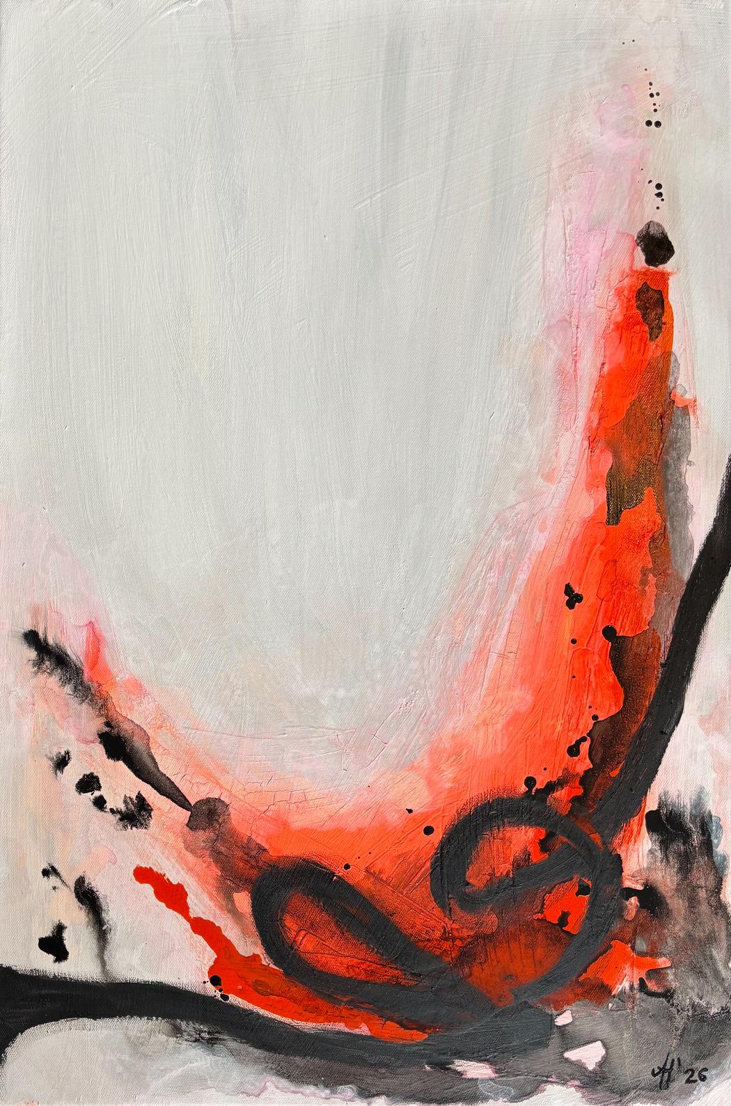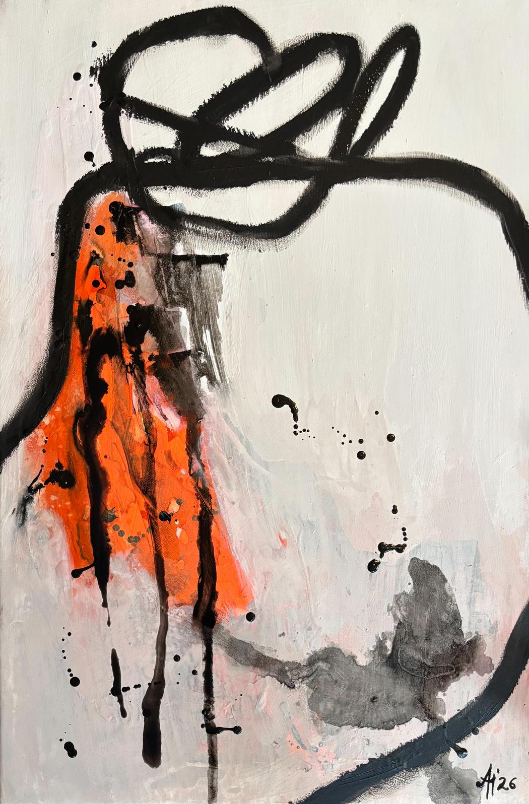 I work with glazes and partial overpainting, allowing the form to shift and condense over time. Rather than defining it in advance, I respond to what is already there and adjust it until it feels internally coherent. Color itself carries meaning. In the Pressure Marks series, the orange area suggests a state of alertness or tension within the individual.
