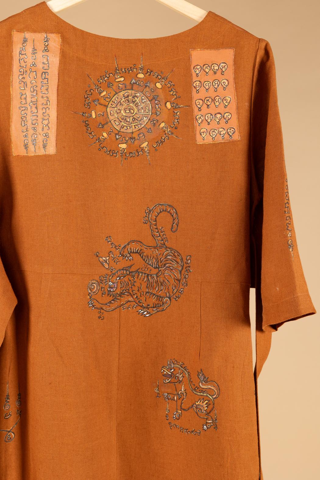 Many of your pieces are created on clothing. Why did you choose garments as your main medium, and what do they symbolize for you?